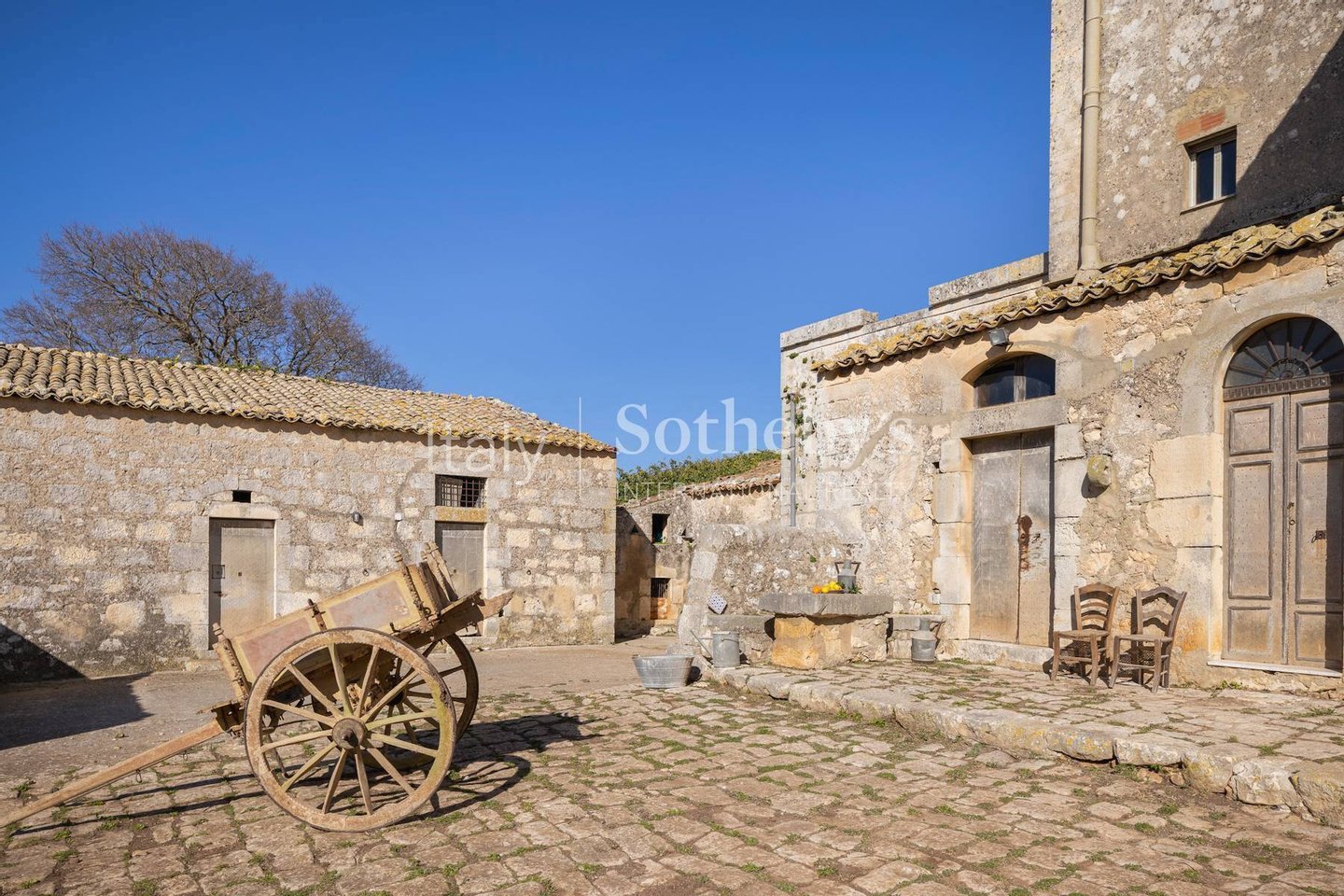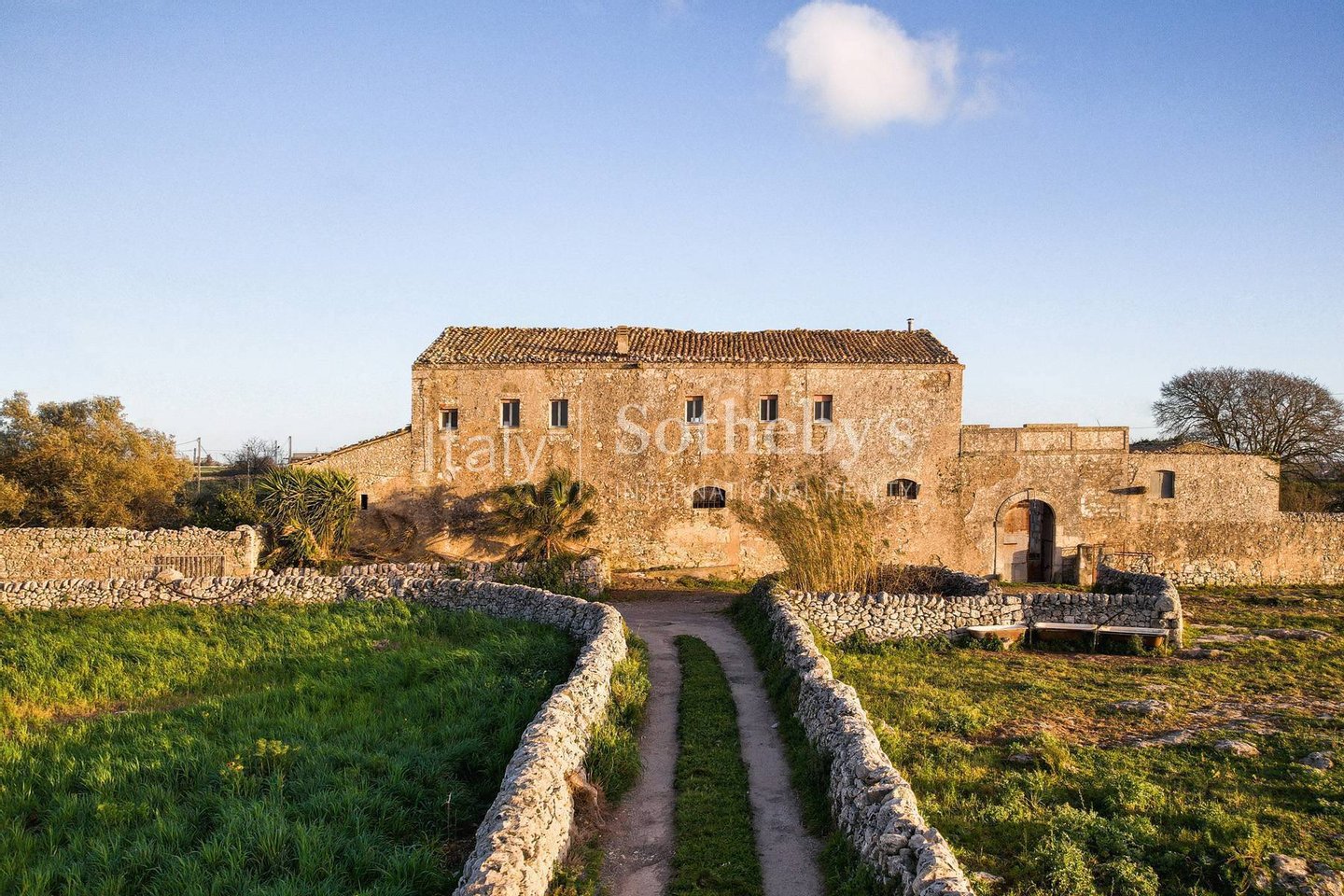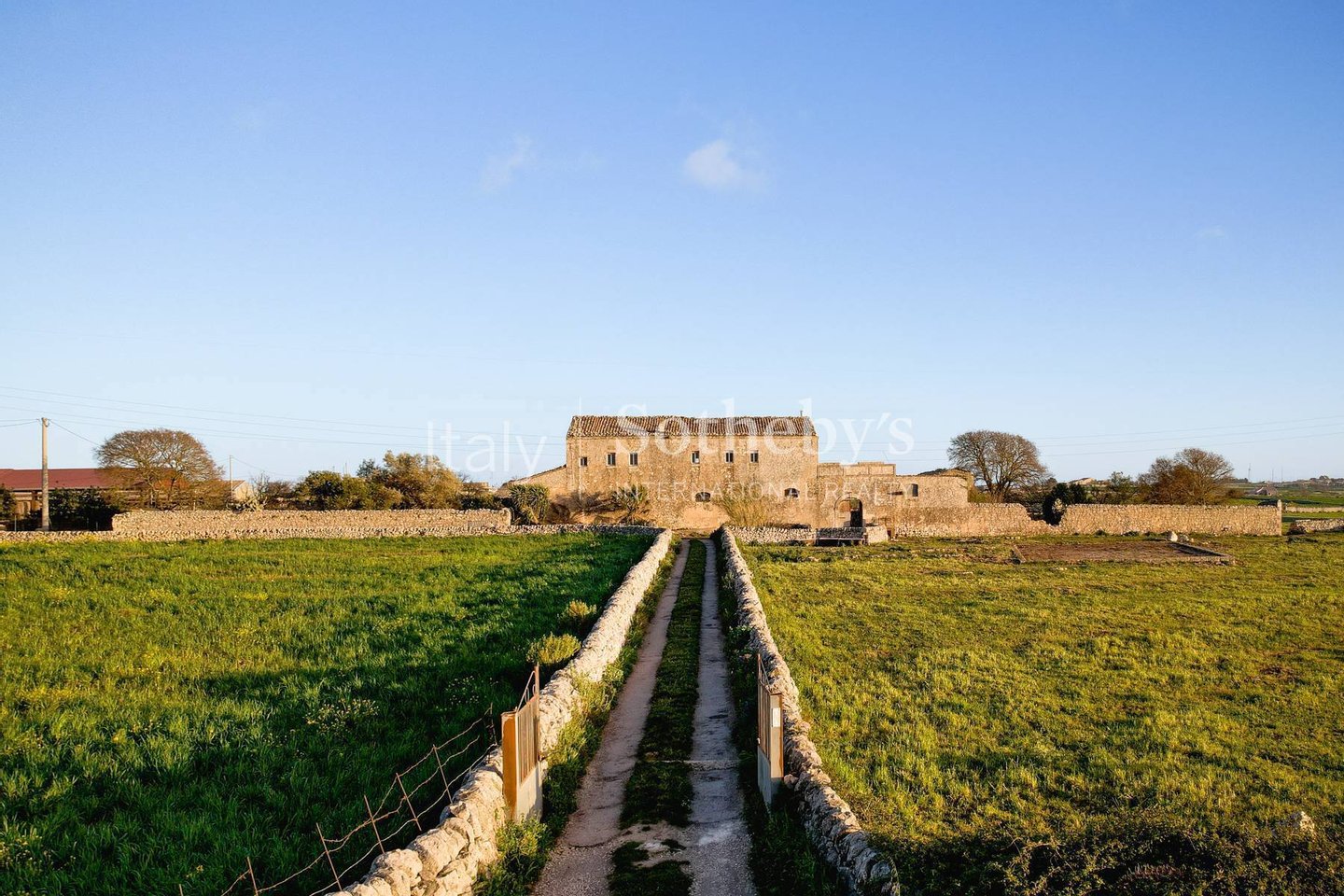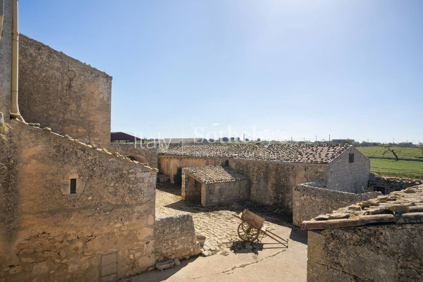 Eingebettet in die Landschaft von Iblea, entlang der SP Ragusa-Marina di Ragusa, steht dieses imposante historische Gebäude, ein altes Bauernhaus, das typisch für die Gegend von Ragusa ist, und ein angrenzendes Herrenhaus auf zwei Höhen. Das 1870 erbaute Kompendium mit 6,2 Hektar dazugehöriger Grundstücksfläche verteilt sich auf zwei Höhenzüge mit charakteristischen Gewölbetragwerken und zahlreichen Wohnblöcken, die einen durch Pflastersteine geprägten Mittelbalken umschließen. Typisch für die damaligen Häuser ist ein von hohen weißen Steinmauern umschlossener Obstgarten und ein Bauernhof aus Modica-Stein. Das Innere des Gebäudes, für eine Grundfläche von etwa 590 qm, ist im Erdgeschoss in antike Dammusì, Krippen, Einbauküche mit Kamin und verschiedene Lagerbereiche unterteilt, im ersten Stock stattdessen in Wohnzimmer und Schlafzimmer, alle mit charakteristischen Oberflächen der damaligen Zeit, Fußböden aus weißem Stein, Pechstein, Zementfliesen und Steinbögen. Ein Teil des Anwesens wurde unvollendet renoviert. Im Allgemeinen sind Renovierungsarbeiten erforderlich. Eine Terrasse im ersten Stock ermöglicht einen herrlichen Blick auf die Küste. Ideale Lage auf dem Land, aber nur wenige Kilometer von der Stadt Ragusa und 17 km von der Küste von Ragusa entfernt. Etwa 90 Minuten vom Catania Fontanarossa Flughafen entfernt.