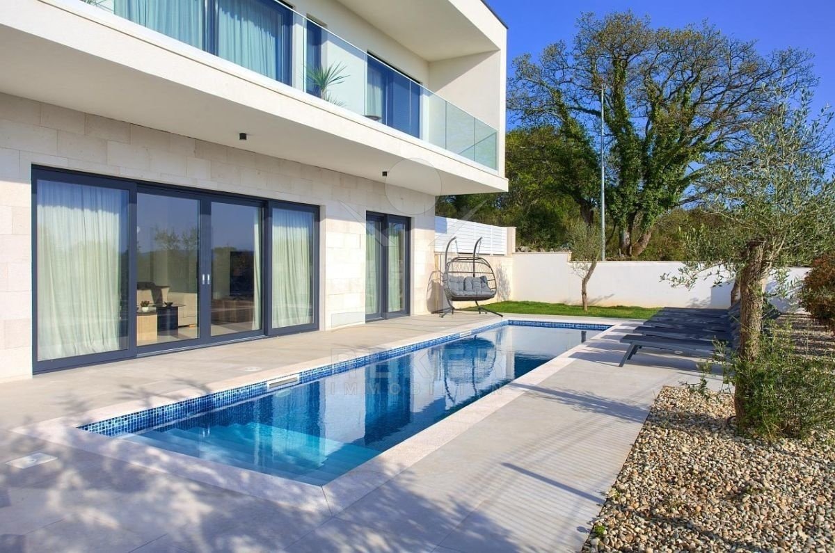 Diese Villa steht etwas außerhalb von Krk-Stadt, auf der Insel Krk. Der kleine Ort liegt idyllisch am Waldrand – ruhig, grün, entspannt. Die Zufahrt ist einfach, geparkt wird direkt auf dem Grundstück. Zwei Stellplätze sind dabei. Wer Privatsphäre mag, wird diese Lage schätzen.