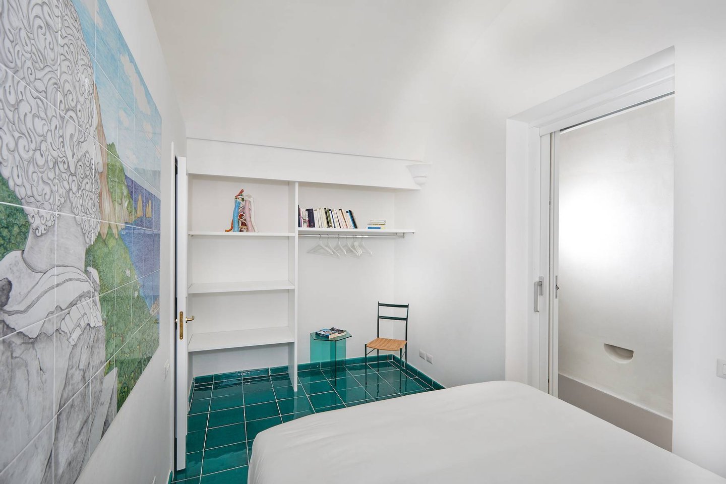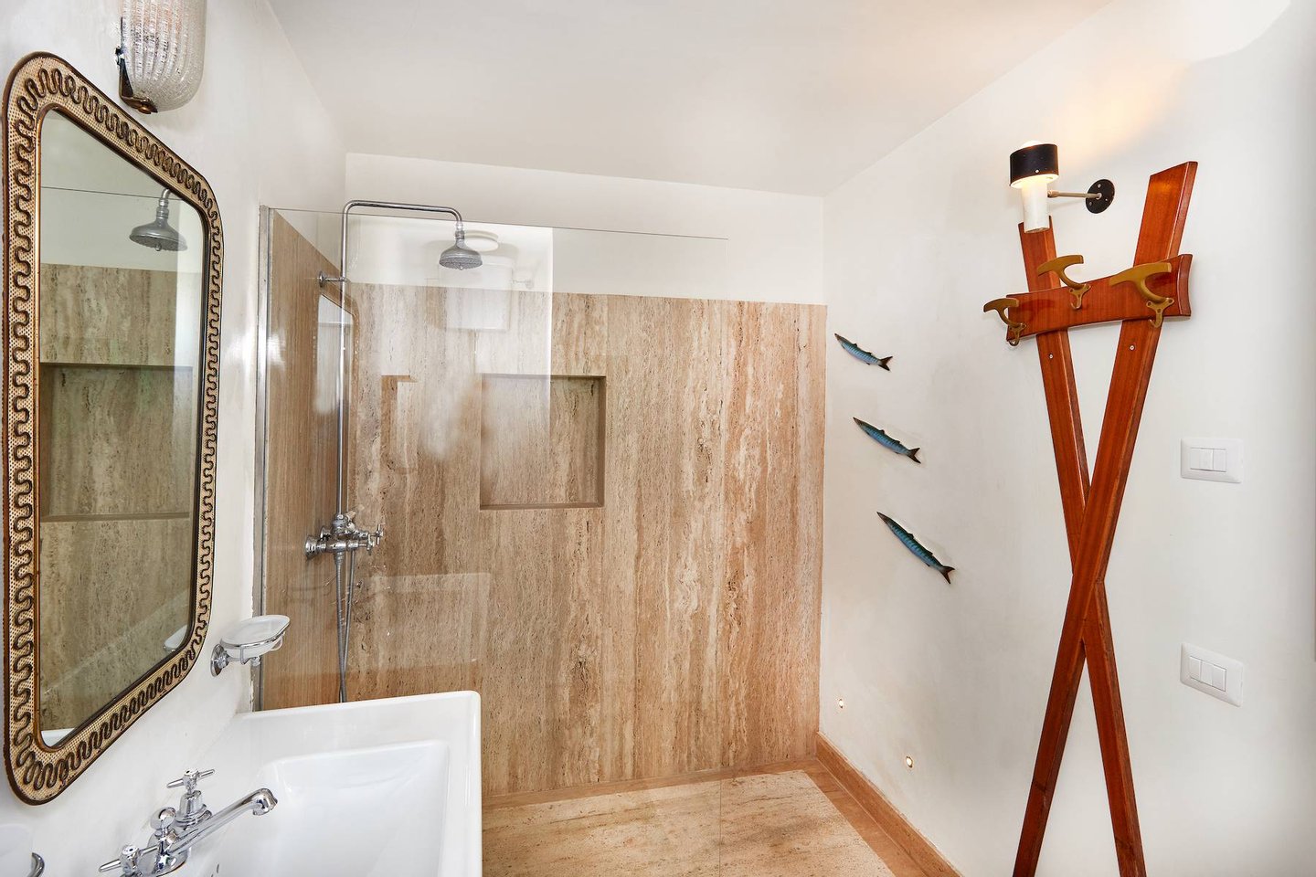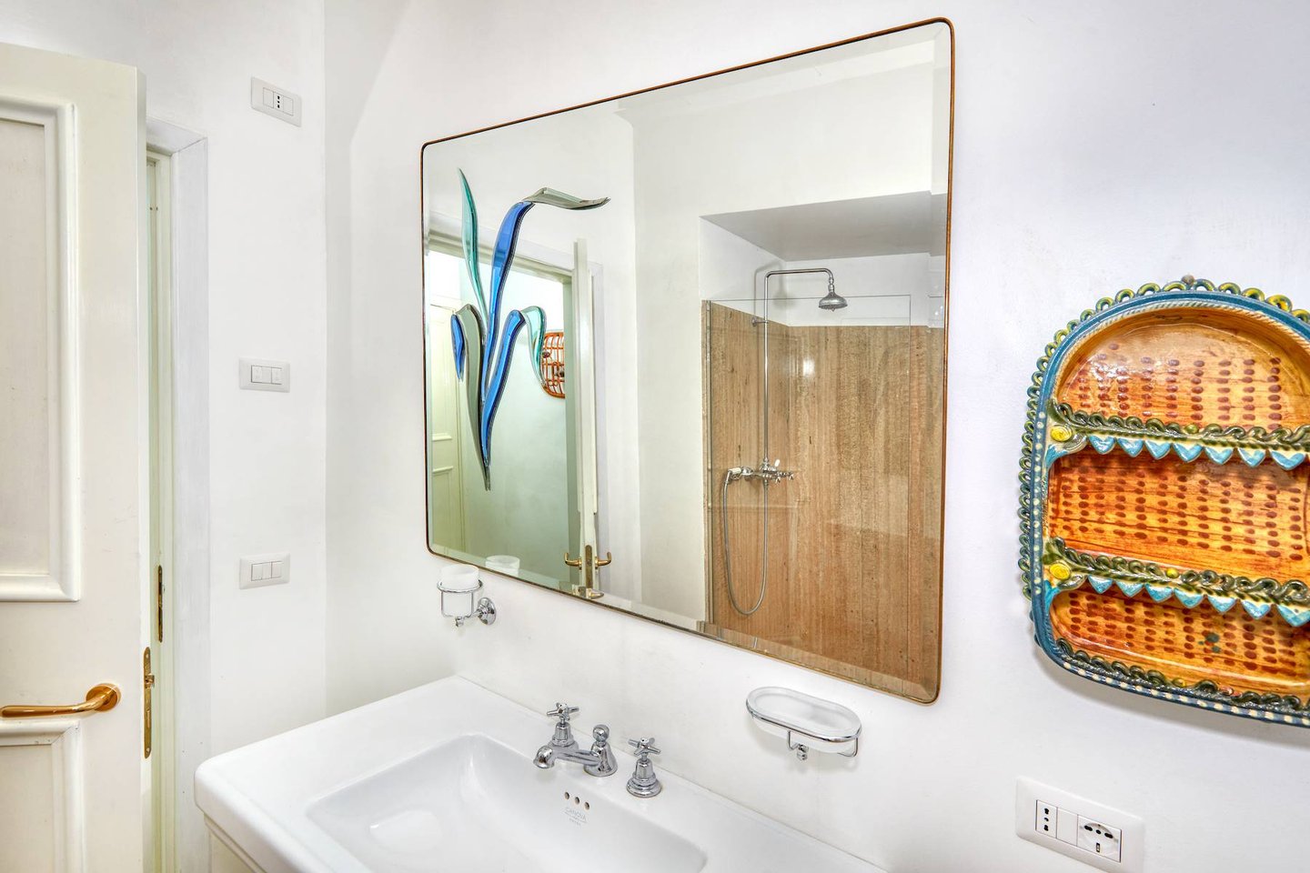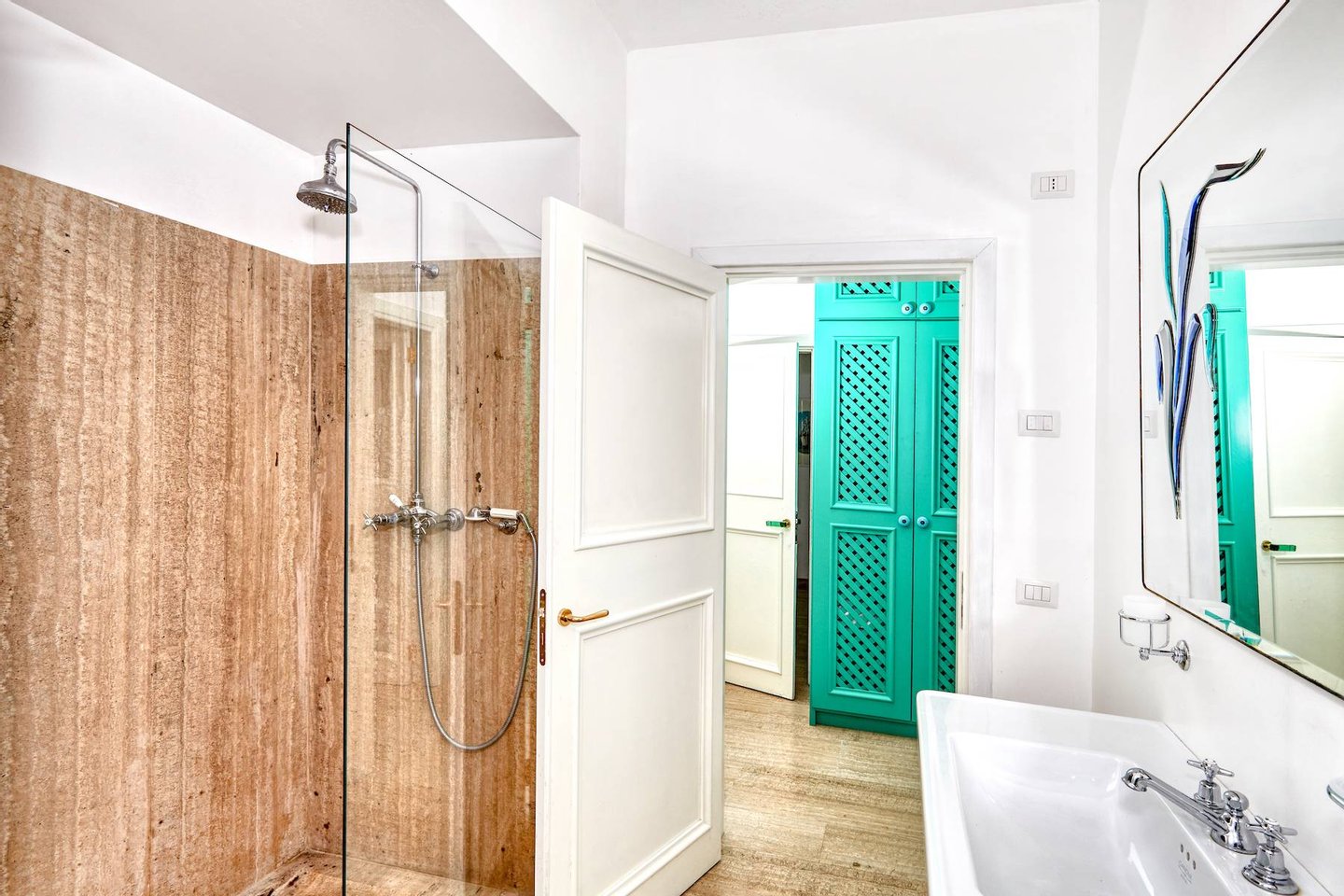 Guests of the villa will mostly spend the day on the large outside terraces, in the small shaded garden and in the pool, as the view is breathtaking, a real postcard with the famous Faraglioni in the background. There are plenty of tables, chairs, lounge chairs and sofas to eat, read, debate, dream and sleep. The pool disinfection system is salt-based, chlorine free. Staff comes twice a week in the early morning to discretely clean and maintain.