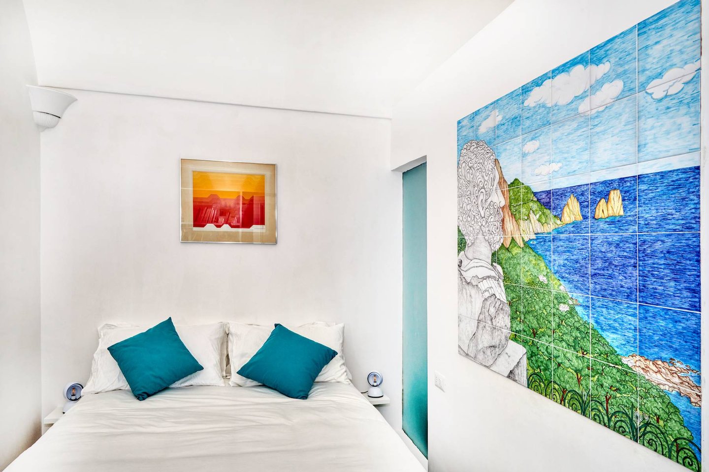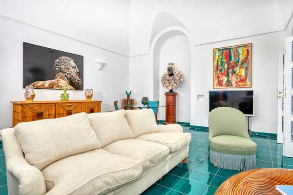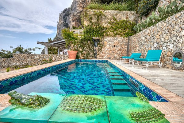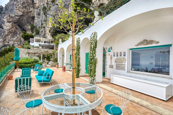 ...mehr lesenVilla 4 Imperatori is located in the extraordinary setting of Marina Piccola on the southern part of the Island of Capri. Built in the 1930's, the villa has an incomparable charm with its busts of Tiberius, Marcus Aurelius, Cesar Augustus and Nero emerging from the terraces, its numerous archeological treasures embedded in the facade and its eclectic collection of objects, ceramics, books. It combines elegance, comfort and simplicity.