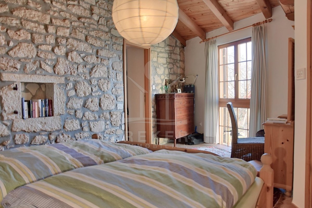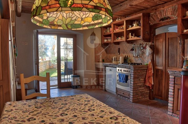 Suchen Sie ein Steinhaus, das Sie mit einem magischen Ambiente überwältigt? Im istrischen Kaštelir, etwa 6,7 km vom Meer entfernt, finden Sie diese wunderschöne Doppelhaushälfte.