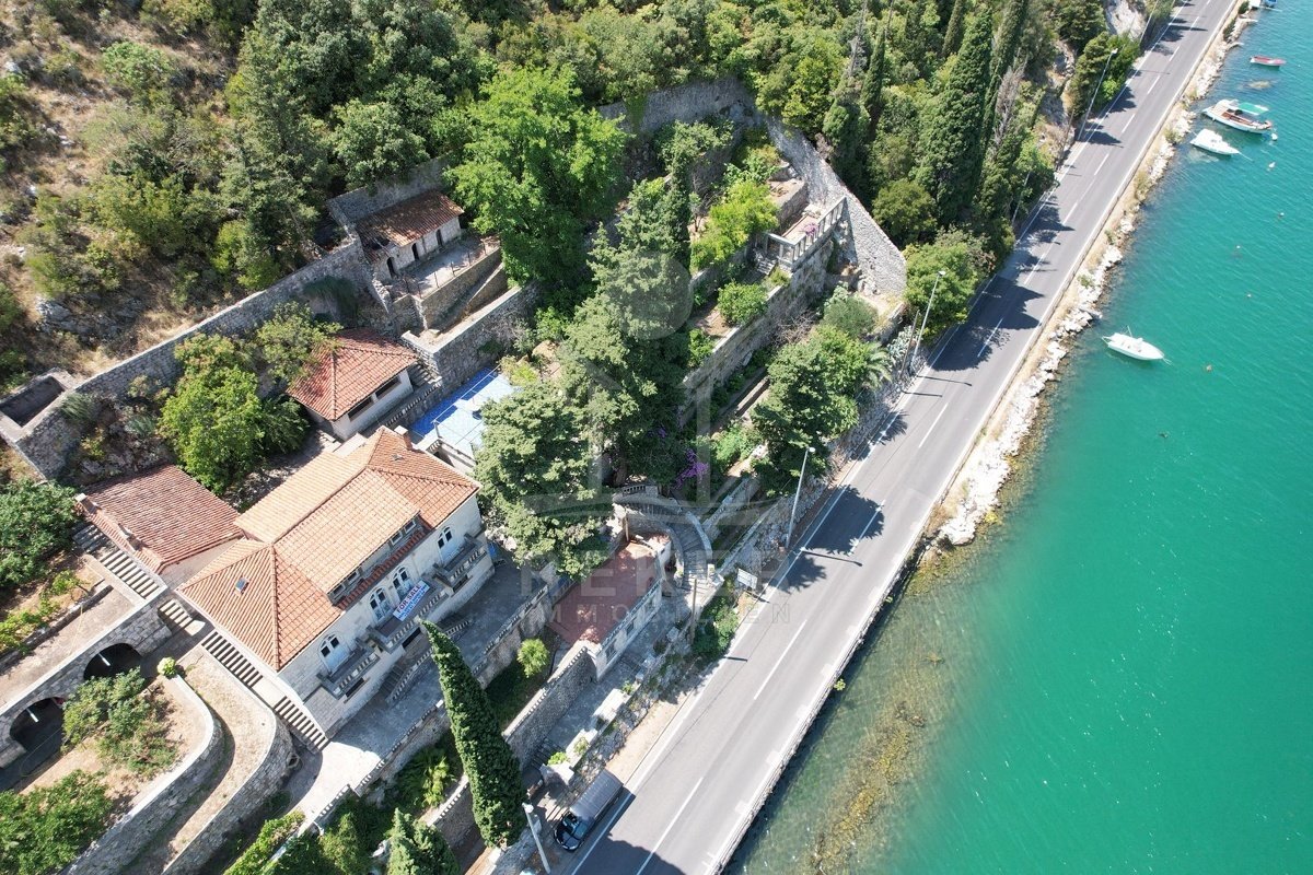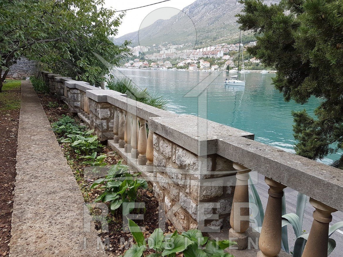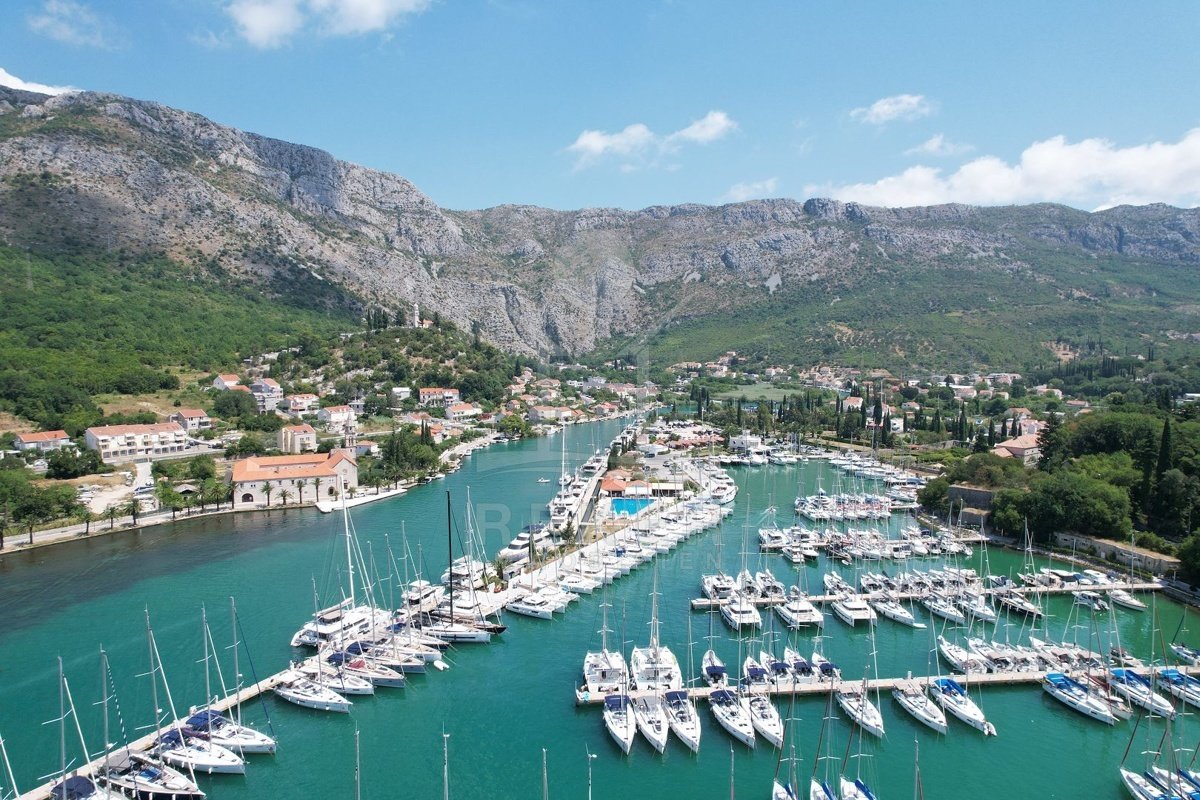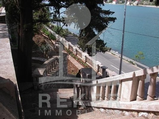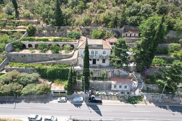 Zwischen Wasser und grünem Hang zieht sich diese stattliche Villa mit weitem Blick auf die Marina Dubrovnik direkt entlang der Küstenstraße von Komolac. Die erste Reihe zum Meer ist hier nicht nur ein Versprechen – sie ist Realität. Vom privaten Uferbereich bis zur oberhalb thronenden Villa erstreckt sich das Anwesen terrassenförmig in den Hang. Die Umgebung ist ruhig, durchgrünt und geprägt von historischen Steinmauern und altem Baumbestand. Wer mit dem Boot kommt, findet Ankerplatz und sichere Garage – beides gleich vor der Haustür.