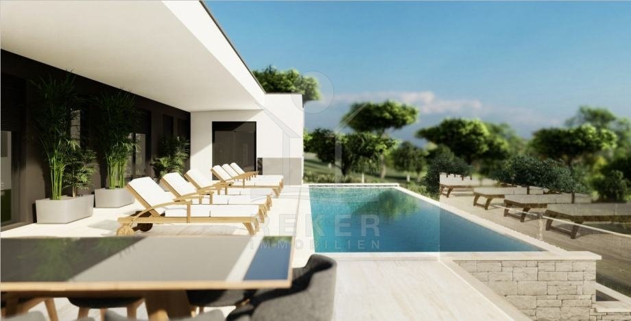 Willkommen in Ihrer Traumvilla in Zentralistrien! Dieses spektakuläre Neubauprojekt hat alles, was Sie für ein luxuriöses und komfortables Leben benötigen. Entspannen Sie im Schwimmbecken mit Massagedüsen und genießen Sie den Blick auf die malerische