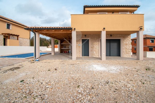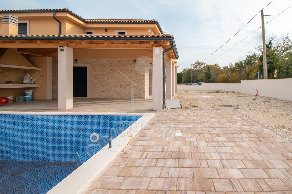 In der malerischen Umgebung von Juršići in Zentralistrien erwartet Sie diese moderne Villa als perfektes Zuhause. Die Villa ist ein Neubau und verfügt über einen eigenen Pool sowie eine Sommerküche, die Ihnen ein perfektes Ambiente für entspannte