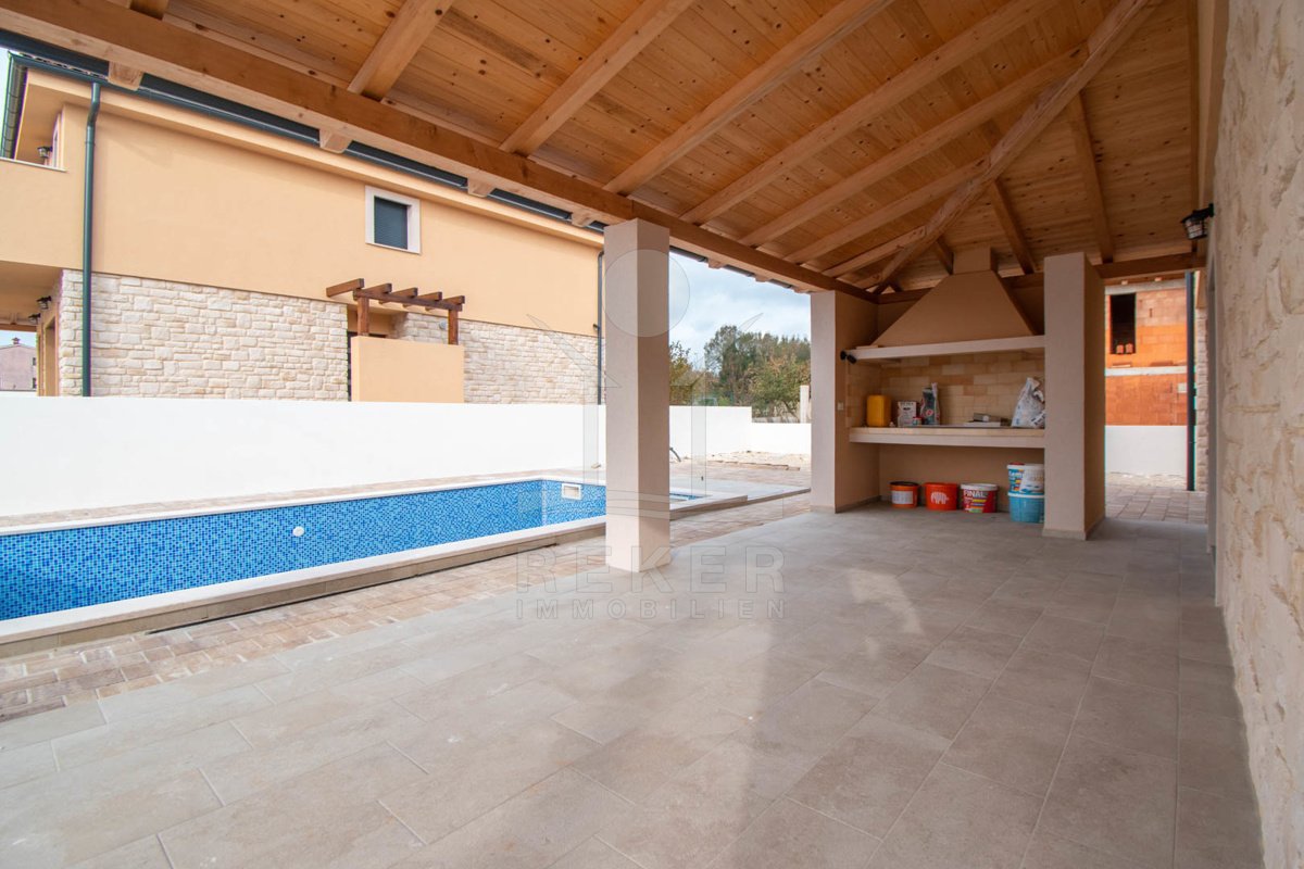 In der malerischen Umgebung von Juršići in Zentralistrien erwartet Sie diese moderne Villa als perfektes Zuhause. Die Villa ist ein Neubau und verfügt über einen eigenen Pool sowie eine Sommerküche, die Ihnen ein perfektes Ambiente für entspannte Sommerabende bietet. Der Garten um die Villa herum ist liebevoll gestaltet und bietet Ihnen einen Ausgleich zum Alltag.