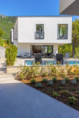 Sie suchen eine beneidenswerte Villa, in der Sie alle Sorgen hinter sich lassen können? Im wunderschönen Mošćenička Draga in Istrien, lediglich etwa 500 m vom Meer entfernt, befindet sich diese spektakuläre Luxus-Villa, die Ihnen das mit hauseigenem Spabereich und Pool ermöglichen wird.