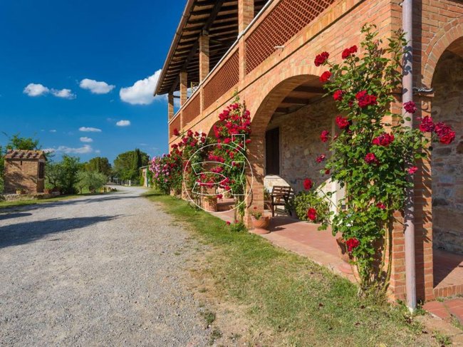 Der Bauernhof liegt auf dem Lande in der Nähe des Dorfes Pienza, mitten im Val d'Orcia, in einer ruhigen und dominanten Lage und ist gleichzeitig durch eine bequeme weiße Straße gut an die Hauptstraße angebunden.