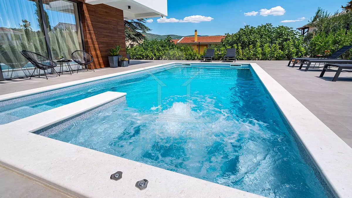 Angefangen mit einer luxuriösen und mit absoluter Stilsicherheit ausgewählten Möblierung, setzen die Taverne und der fabelhafte, beheizbare und unglaubliche 32 m² umfassende Pool mit Hydro-Massage die Liste fort.