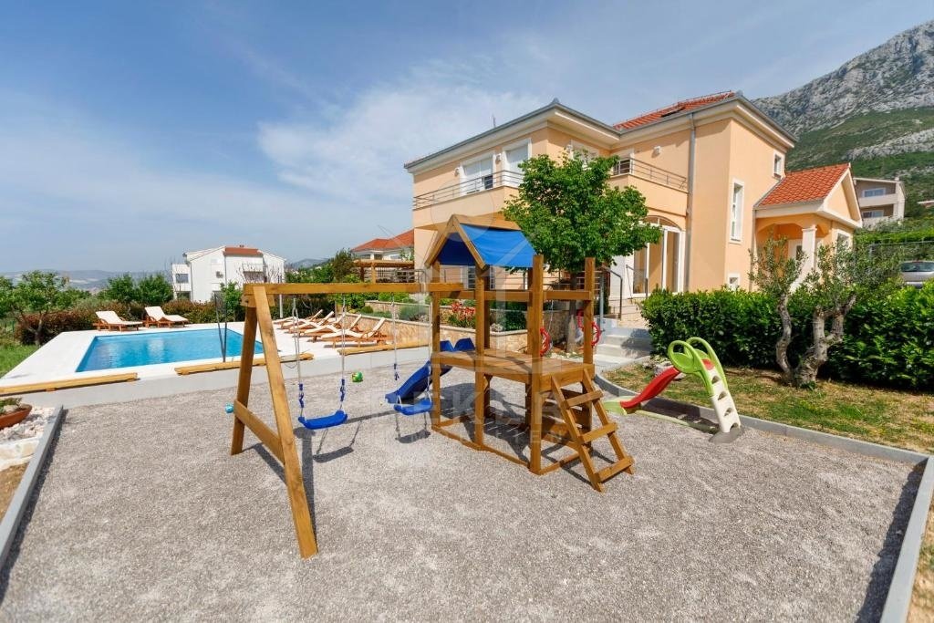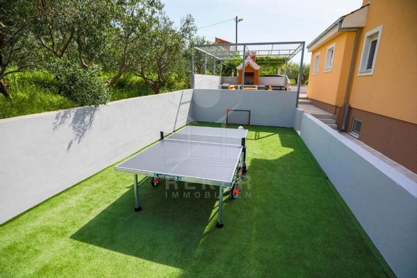 Freuen Sie sich auf eine fabelhafte Lage, lediglich etwa 1 km vom Meer und dem Ortszentrum entfernt, sowie einen zauberhaften Außenbereich mit beheizbarem Pool, Tischtennisplatte und Spielplatz.