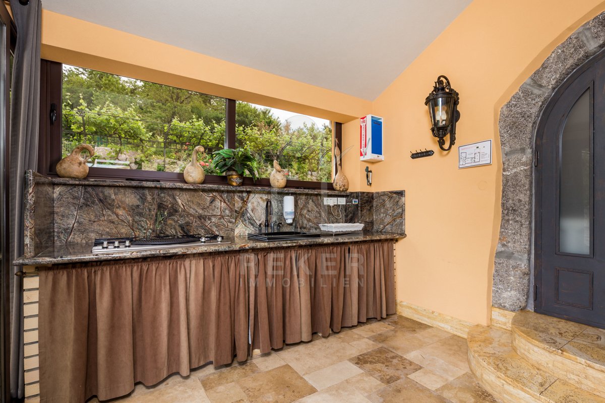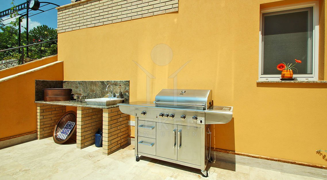 Freuen Sie sich schon jetzt auf den riesigen, mit Salzwasser gefüllten und beheizbaren Pool, sowie die Außenküche mit Grill.