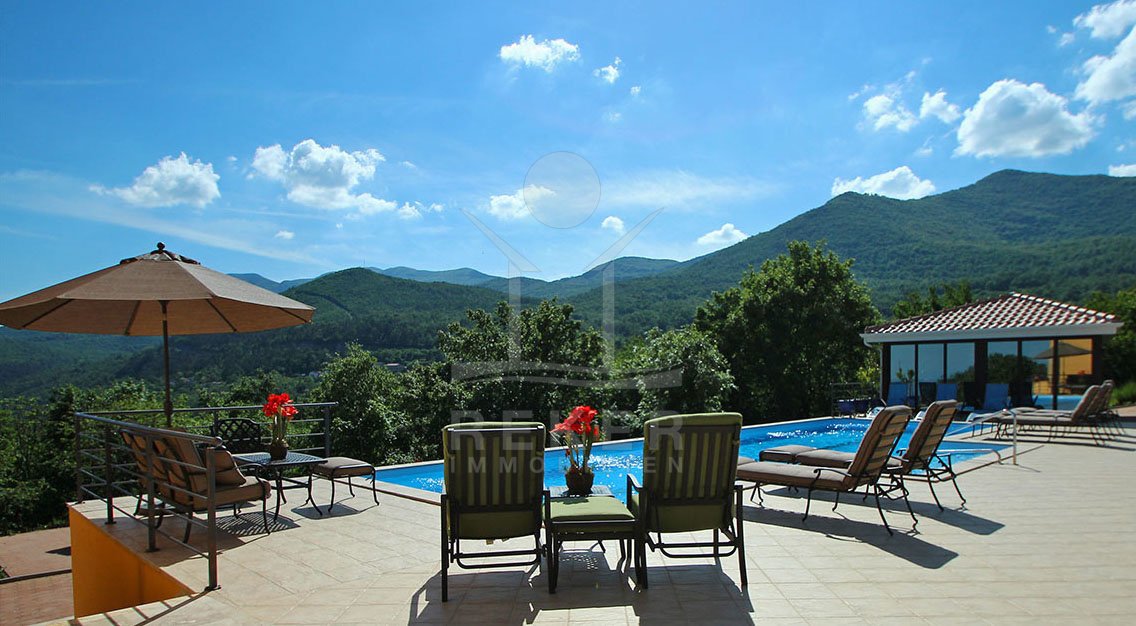 Dieses absolut atemberaubende und einmalige Anwesen umfasst eine Fläche von ca. 13.000 m² und einer lichtdurchströmten Wohnfläche von ca. 710 m², die sich auf zwei Villen verteilt.
