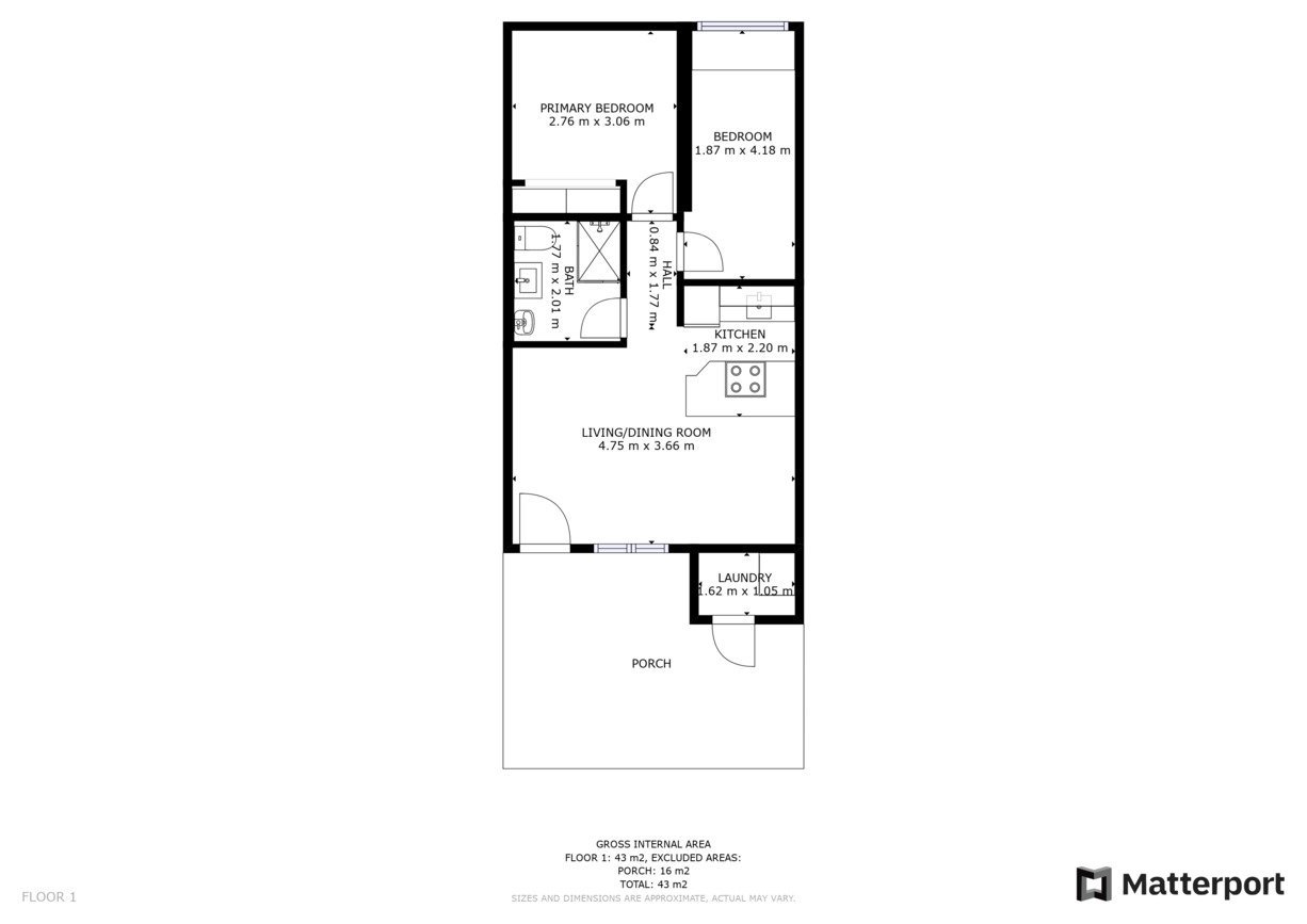 Bietet ein offenes Wohn-/Esszimmer mit voll ausgestatteter Küche, 2 Schlafzimmer, eines davon mit Doppelbett, mit Einbauschränken in beiden Schlafzimmern. 1 neues, komplettes Badezimmer mit Dusche, ein Abstellraum und eine Außendusche auf der vorderen Terrasse, die eine herrliche Ausrichtung hat, was sie zu einem großartigen Ort macht, um den Sommer zu verbringen.