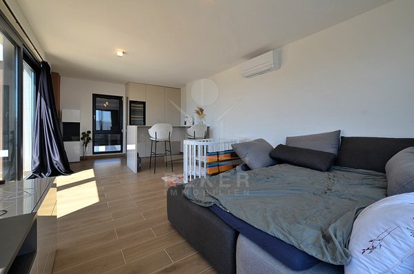 Freuen Sie sich auf ein geräumiges Interieur, sowie eine sensationelle Dachterrasse mit schönem Ausblick auf das lediglich 1,5 km entfernte Meer.