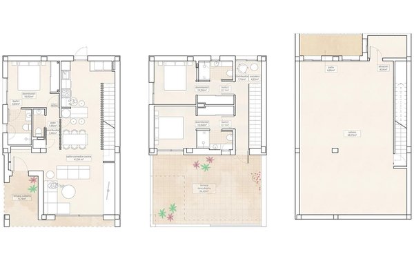 Diese wunderschönen Villen verfügen über eine konstruierte Fläche von ca. 228 m² - 230 m² (inklusive Terrassen) mit