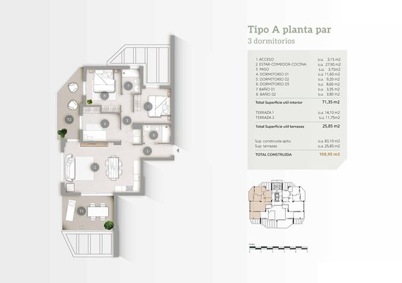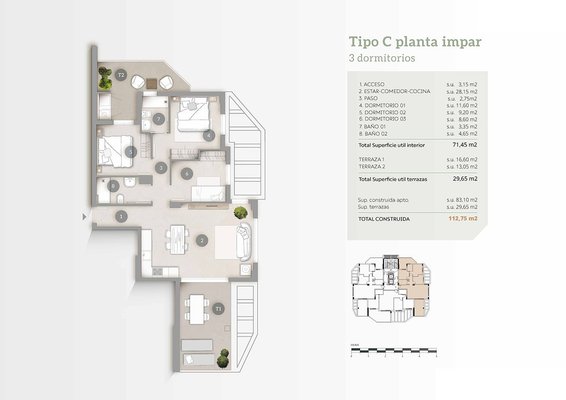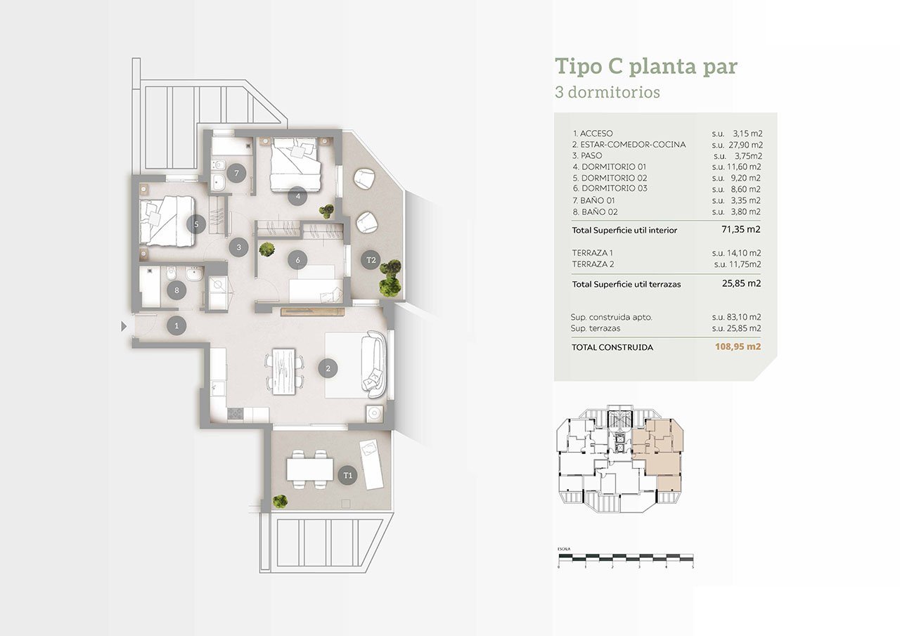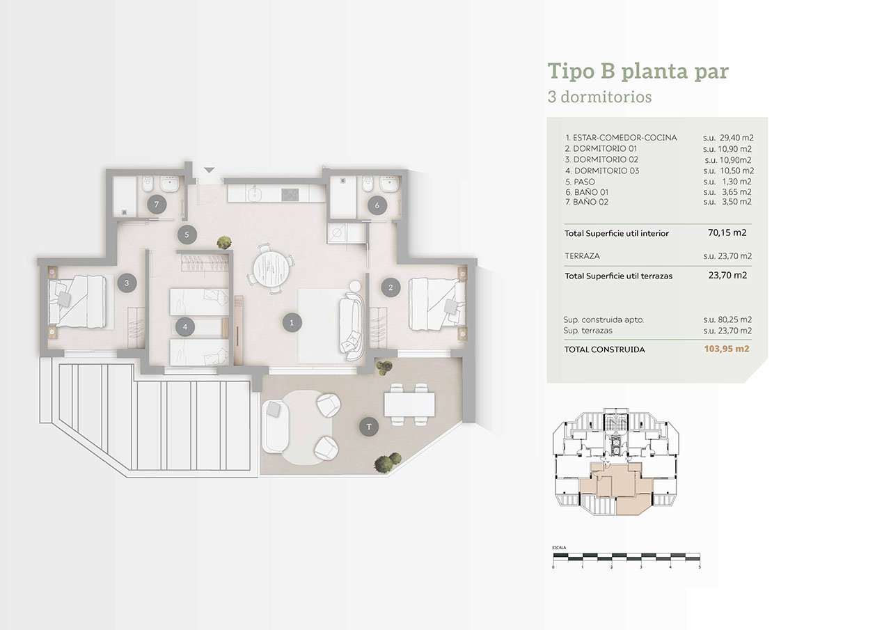 Diese fantastischen Wohnungen in Strandnähe verfügen über eine konstruierte Fläche von ca. 104 m² - 113 m² (verschiedene Modelle, inklusive Terrassen) mit