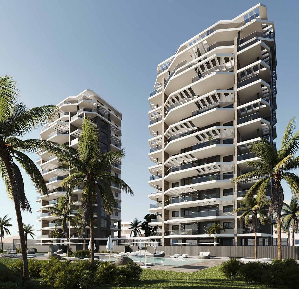 Diese Anlage besteht aus zwei Appartementhäusern, die nur 200 m vom Strand entfernt liegen. Insgesamt entstehen hier 74 Appartements mit 2 oder 3 Schlafzimmern und 2 Bädern.