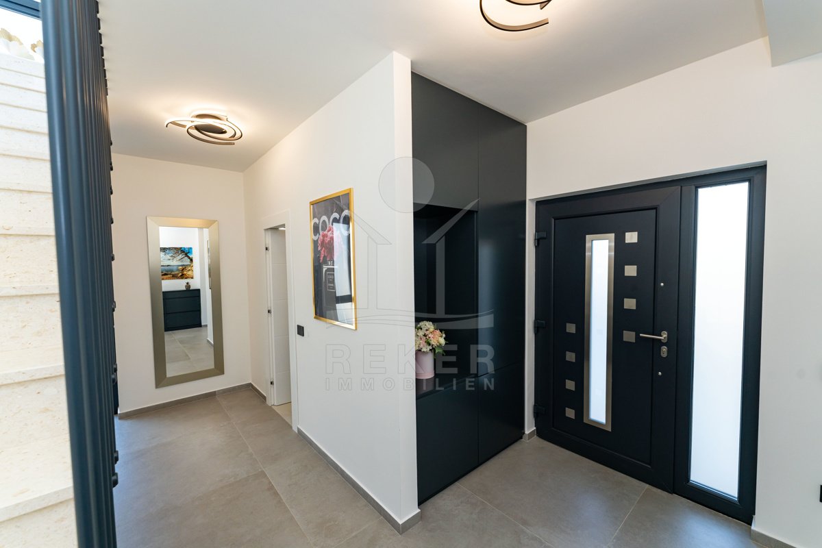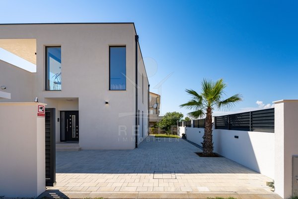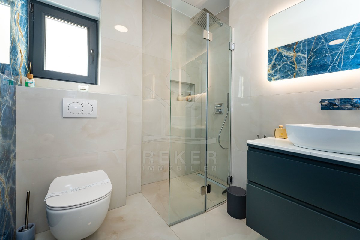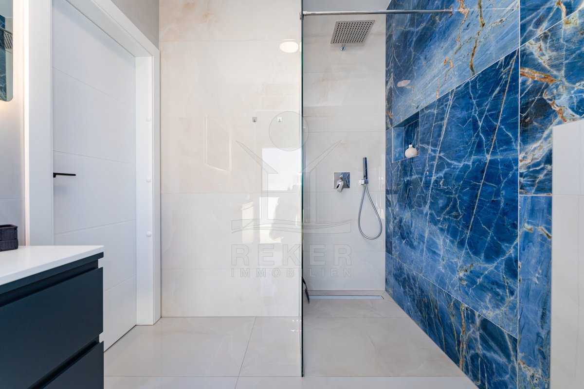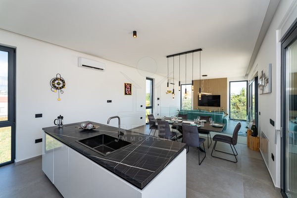 Erleben Sie modernes Wohnen auf zwei Ebenen – mit privater Dachterrasse, beheizbarem Pool und Blick aufs Meer. Drei Schlafzimmer, Design-Küche und edle Materialien sorgen für Komfort auf höchstem Niveau. Die Villa ist ein Neubau von 2024 und komplett