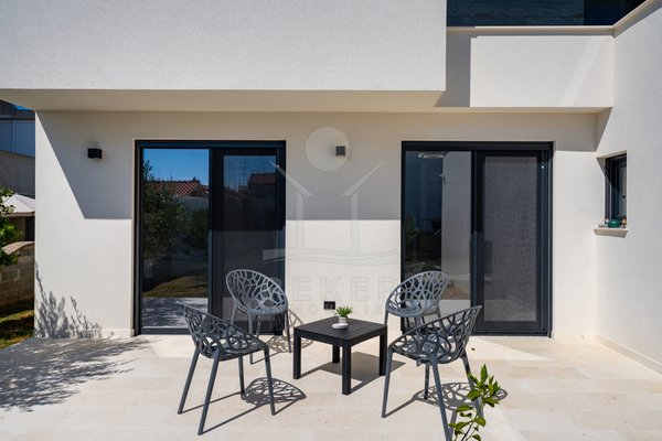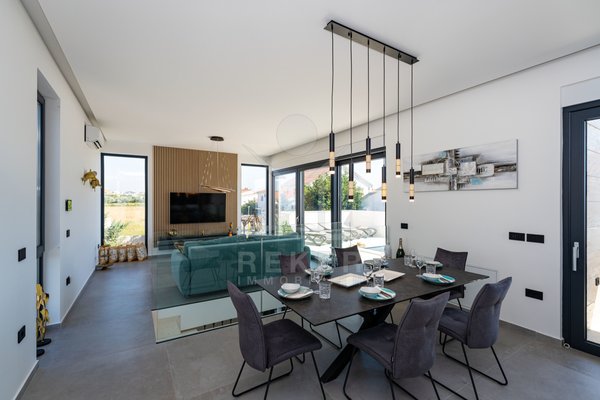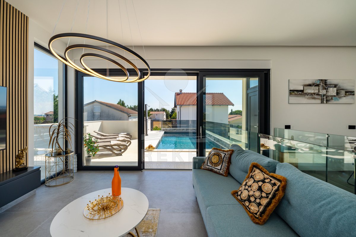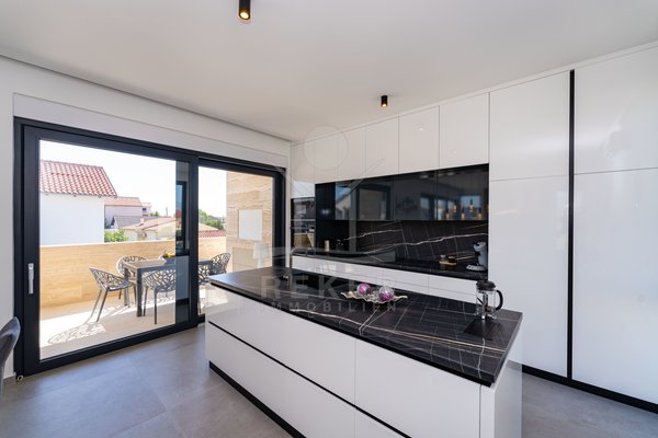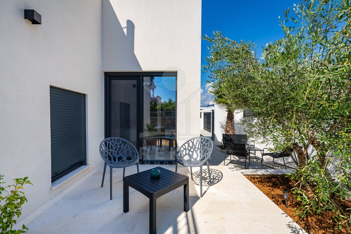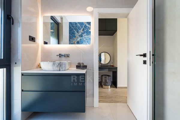 Erleben Sie modernes Wohnen auf zwei Ebenen – mit privater Dachterrasse, beheizbarem Pool und Blick aufs Meer. Drei Schlafzimmer, Design-Küche und edle Materialien sorgen für Komfort auf höchstem Niveau. Die Villa ist ein Neubau von 2024 und komplett