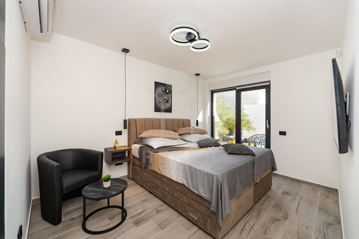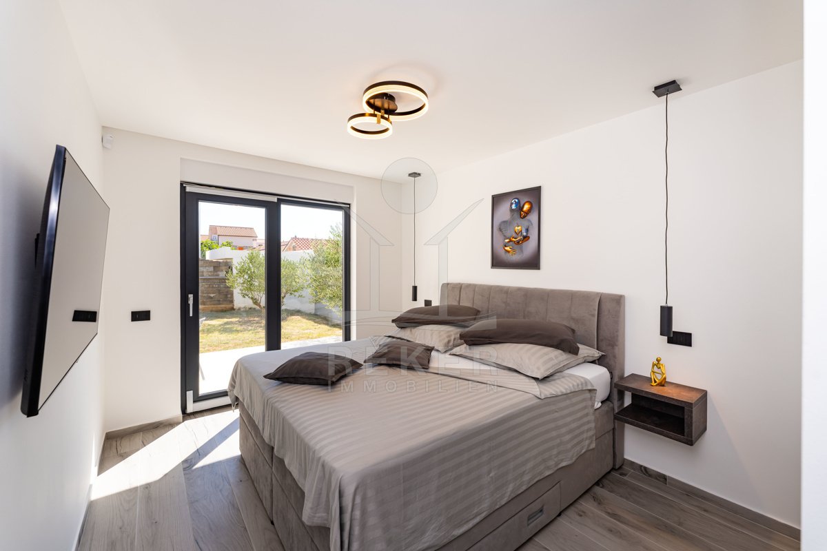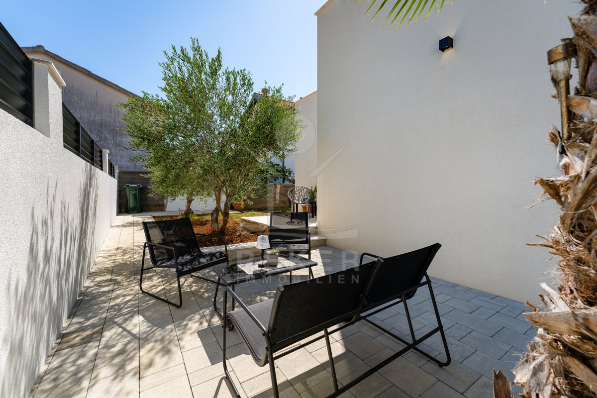 Erleben Sie modernes Wohnen auf zwei Ebenen – mit privater Dachterrasse, beheizbarem Pool und Blick aufs Meer. Drei Schlafzimmer, Design-Küche und edle Materialien sorgen für Komfort auf höchstem Niveau. Die Villa ist ein Neubau von 2024 und komplett möbliert.