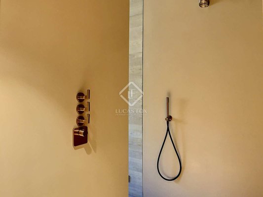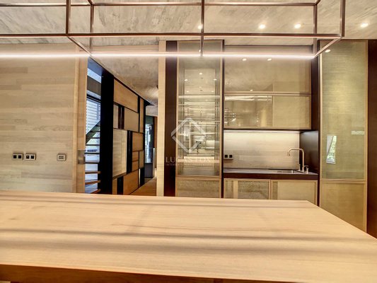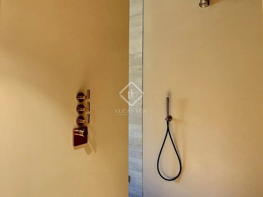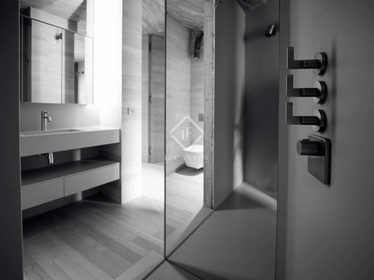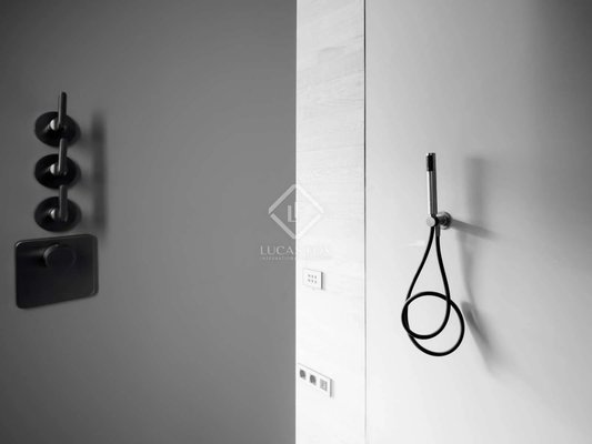 Die Wohnung verfügt über integrierte Möbel wie Bänke, Viabizzuno-Beleuchtungssysteme, maßgefertigte Fenster und Lutron-Hausautomation. Die Küche ist komplett mit den neuesten Miele-Geräten ausgestattet und verfügt über einen Mitteltisch aus massiver Eiche. Die Bäder und Toiletten sind aus Corian-Material gefertigt und individuell ausgestattet.
