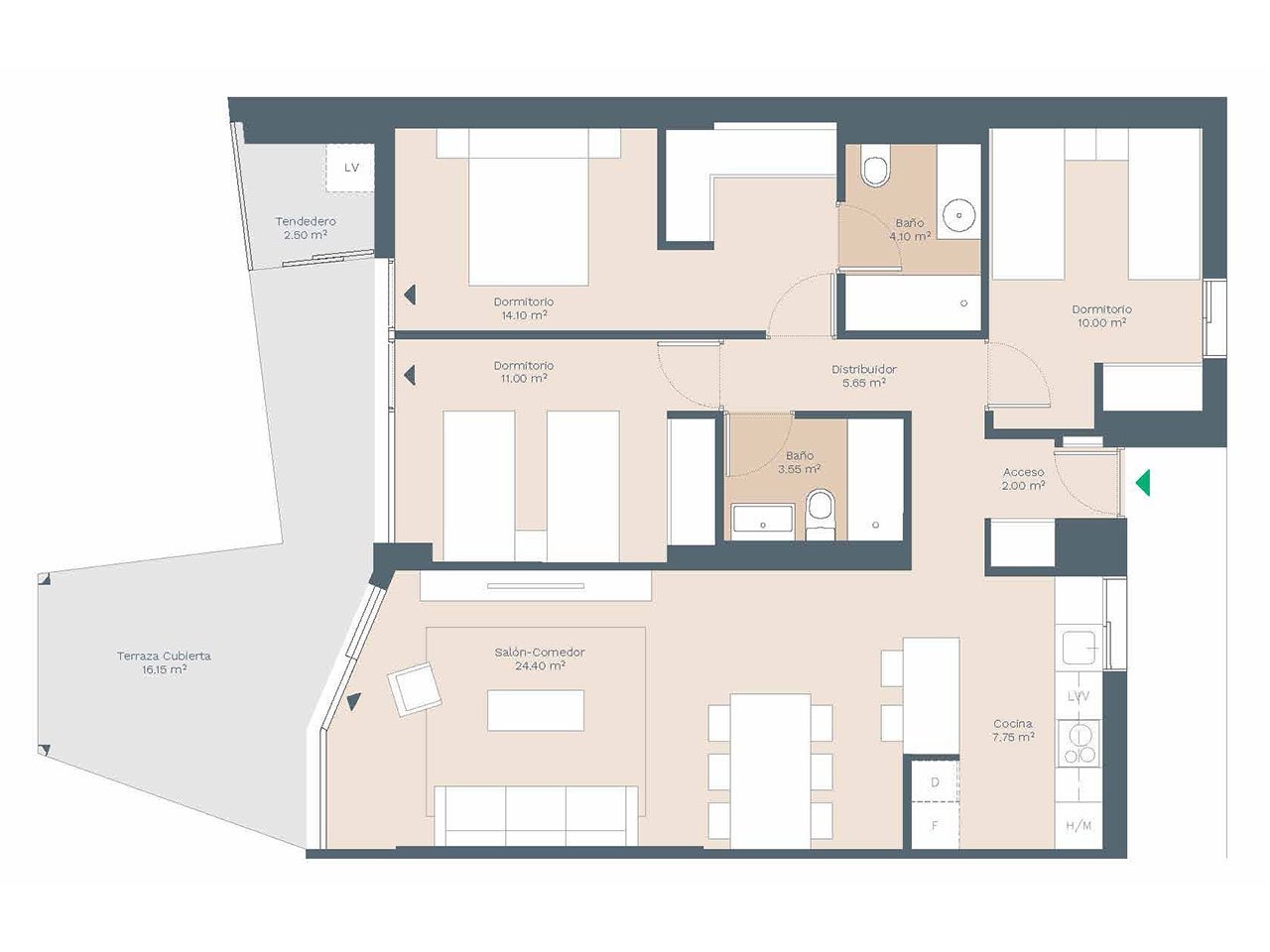 Diese wunderschönen Appartements verfügen über eine konstruierte Fläche von 143 m² - 145 m² (verschiedene Modelle, inklusive Terrassen) mit
