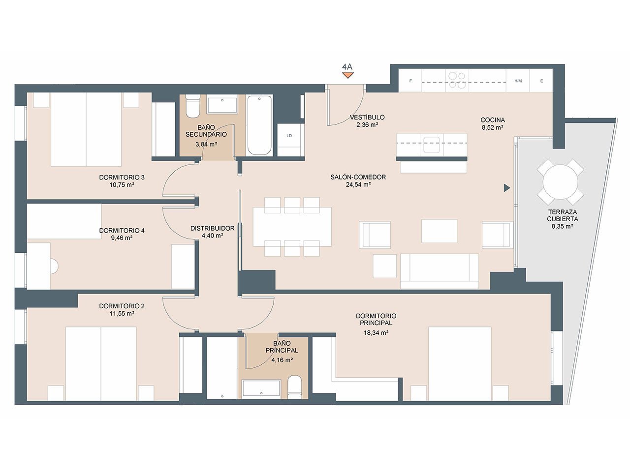 Diese zentral gelegenen Appartements verfügen über eine konstruierte Fläche von ca. 134 m² (verschiedene Modelle, inklusive Terrassen) mit