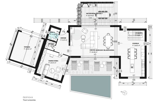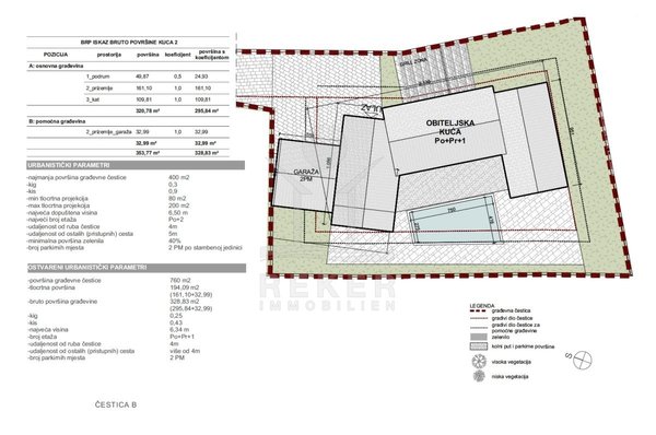 Hier angeboten wird ein etwa 760 m² umfassendes Baugrundstück mit einer Projektdokumentation für eine beneidenswerte Villa mit Pool, Wellnessbereich und schönem Garten.