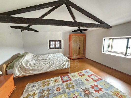 Willkommen in Ihrem Traumhaus in einer idyllischen Lage! Dieses atemberaubende Natursteinhaus im ländlichen Stil bietet Ihnen die perfekte Kombination aus rustikalem Charme und zeitloser Eleganz. Hier können Sie in Ruhe relaxen und dem Stress des Alltags entfliehen. Das durchzogene Landhaus mit Holzbalken ist ein wahrer Hingucker und versprüht eine Atmosphäre der Wärme und Gemütlichkeit. Vom Dachgeschoss haben Sie einen atemberaubenden Panoramablick auf die Umgebung und das Tal. Erleben Sie das Beste von Istrien in Ihrem neuen Heim!