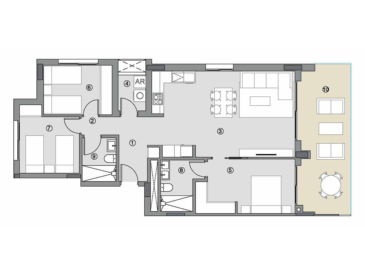 Die Ausstattung der Wohneinheiten beinhaltet unter anderem Klimaanlage, Fußbodenheizung in den Badezimmern, Sicherheitstüren, Videogegensprechanlage, Einbauküchen mit Elektrogeräten, Badezimmer mit Möbeln, Spiegeln und Duschtrennwänden,