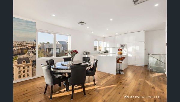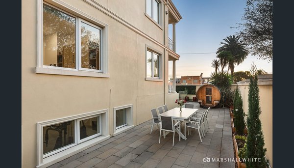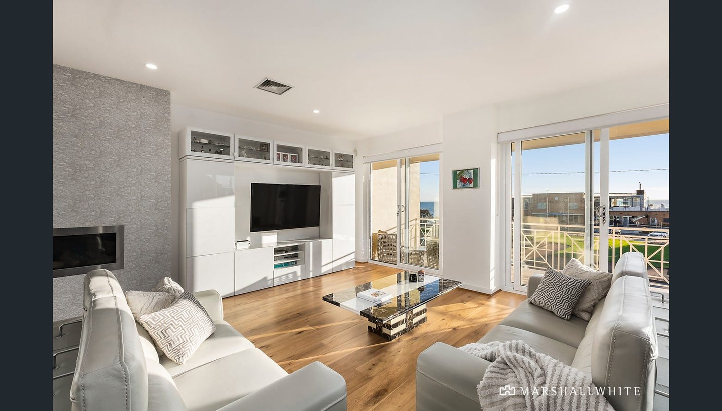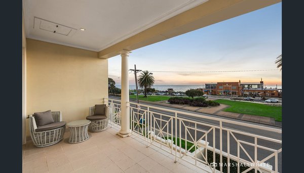 Mit herrlichem Blick auf den Strand, den Yachtclub und die Skyline der Stadt gegenüber den berühmten Middle Brighton Baths bietet dieses mediterran inspirierte Haus eine der besten Aussichten in Melbourne. Diese Residenz mit beeindruckenden