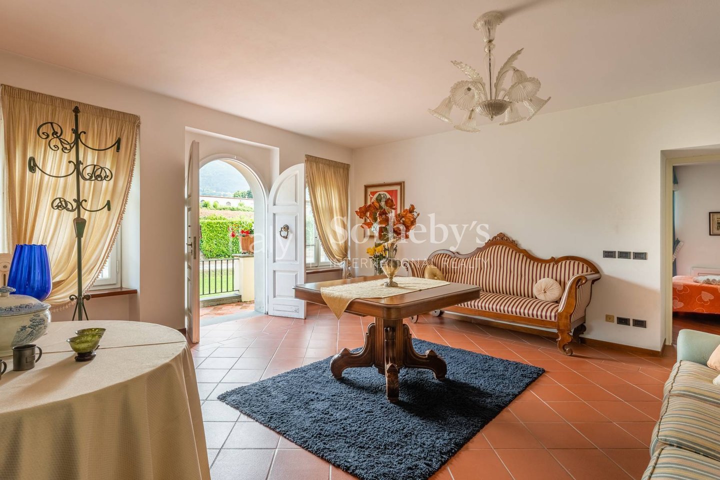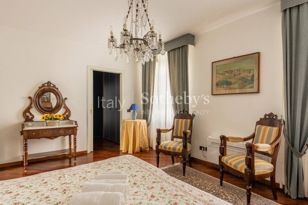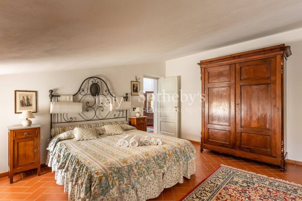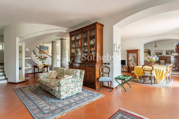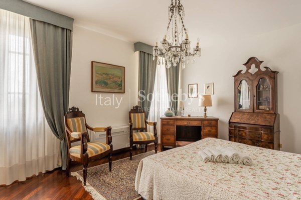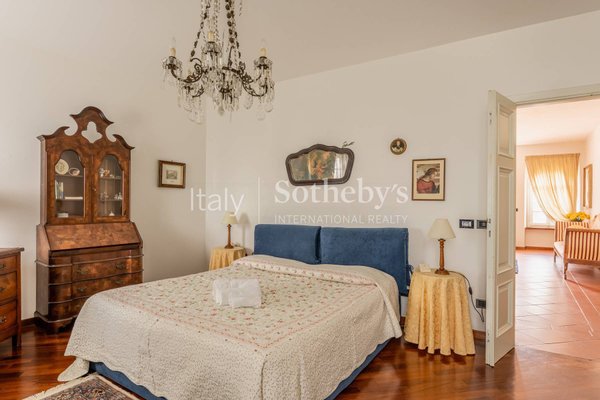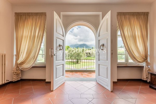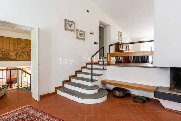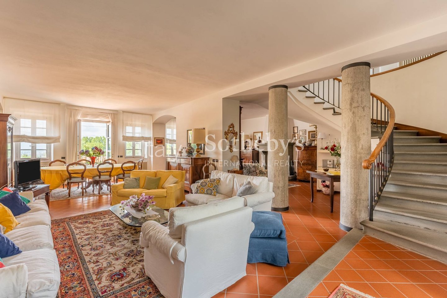 Die elegante Haupttreppe aus Stein führt in den ersten Stock, der durch ein großes Wohnzimmer mit separatem Eingang von außen über die klassische Doppeltreppe, typisch für Lucchese-Villen, und den Schlafbereich mit drei großen Doppelzimmern mit jeweils eigenem Bad gekennzeichnet ist.