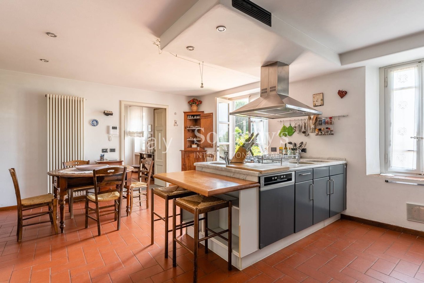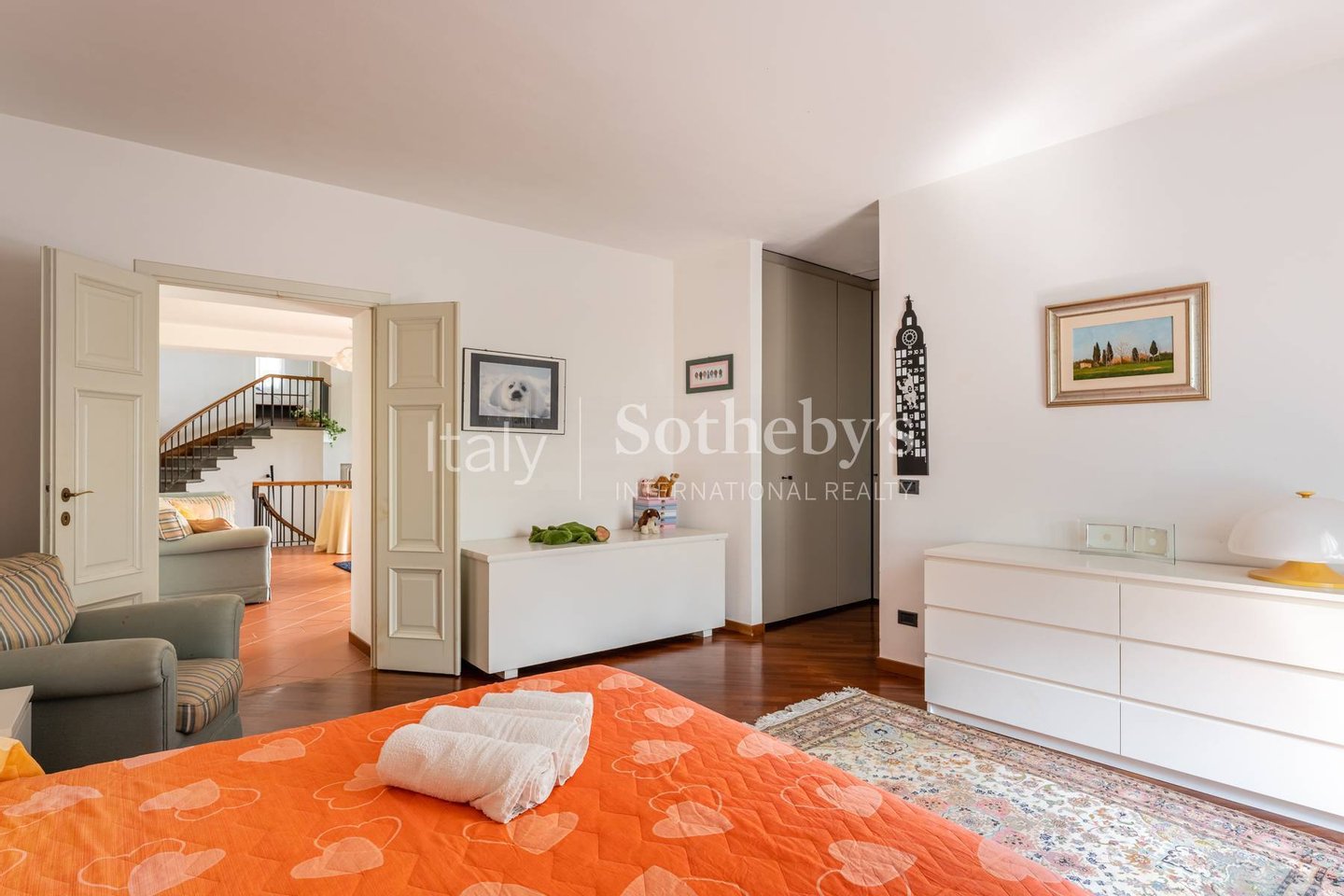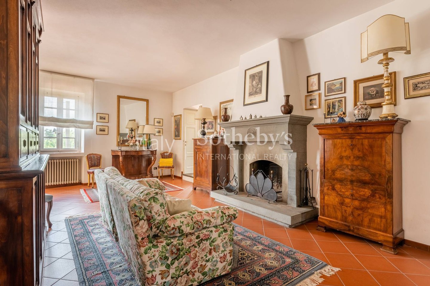 Die elegante Haupttreppe aus Stein führt in den ersten Stock, der durch ein großes Wohnzimmer mit separatem Eingang von außen über die klassische Doppeltreppe, typisch für Lucchese-Villen, und den Schlafbereich mit drei großen Doppelzimmern mit jeweils eigenem Bad gekennzeichnet ist.