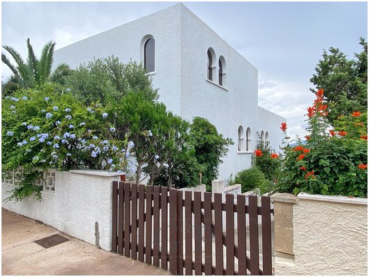 Durch einen Torbogen im arabischen Stil betreten Sie das ca. 1800 qm große Grundstück, das sich nur wenige Meter vom Meer entfernt befindet.
