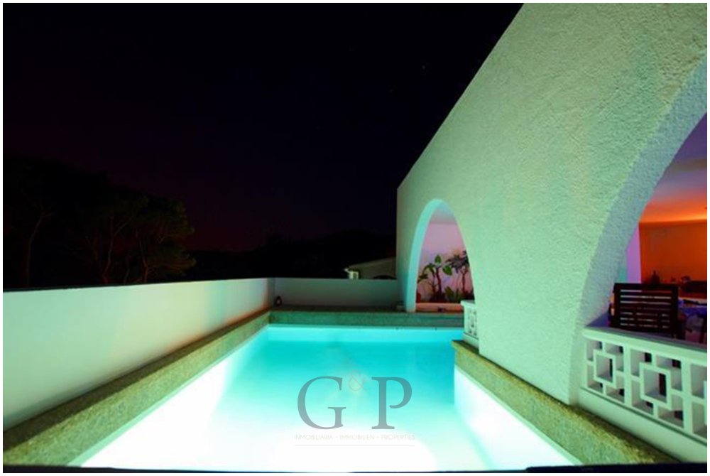 Die schönen, teilweise überdachten Terrassen im Erdgeschoss laden dazu ein, die Ruhe und den Ausblick zu genießen. Der große L-förmige Pool gibt Ihnen die Möglichkeit, sich an warmen Sommertagen abzukühlen und diesen besonderen Ort zu genießen.