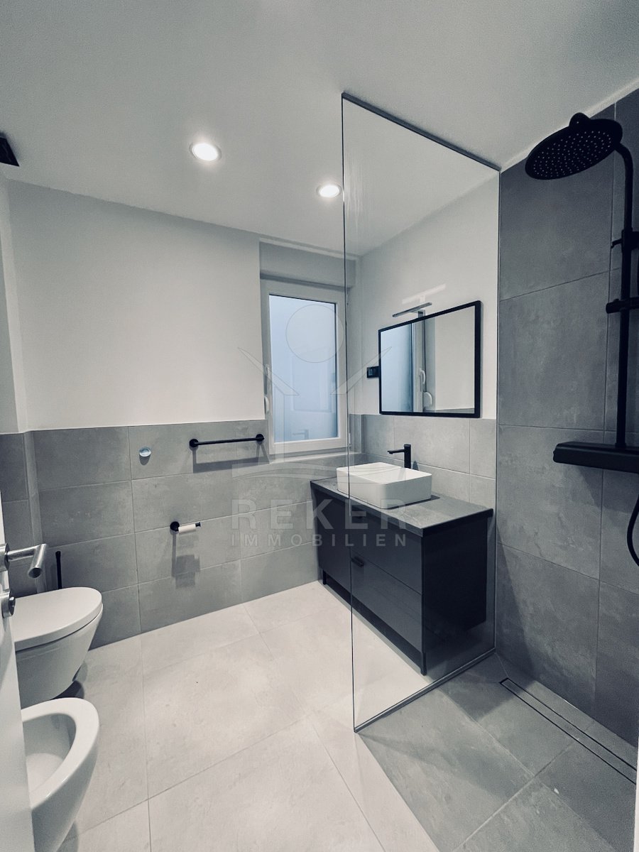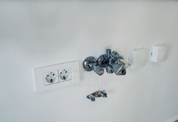 In der Küche wird ein Fliesenspiegel angebracht und die Wände im Bad werden bis zu 1,8 m hoch gefliest.
