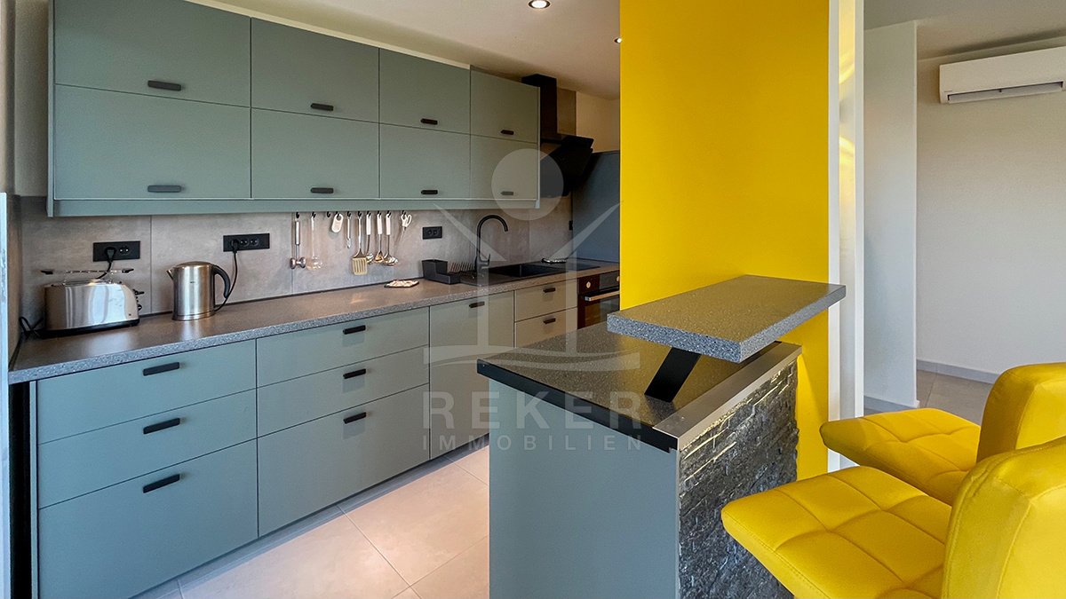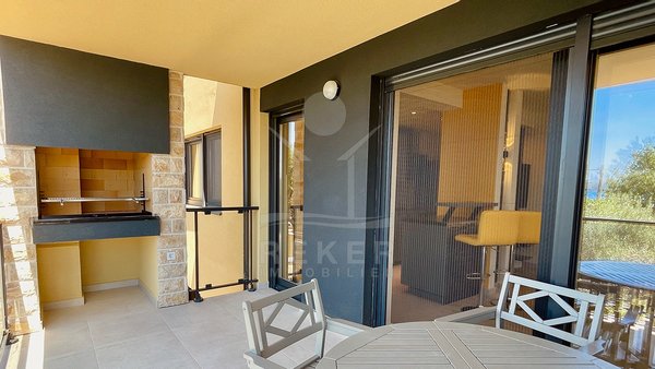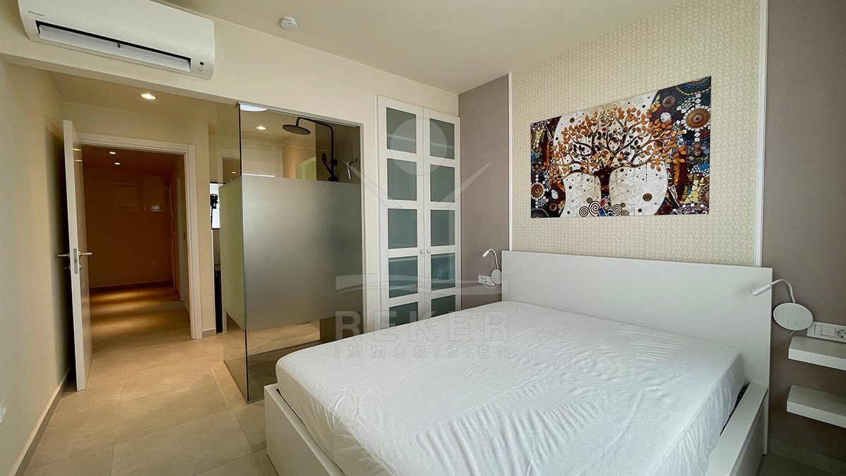 Diese neugebaute Wohnung wird Sie beeindrucken: 90 m² Wohnfläche mit höchstem Komfort und hochwertiger Ausstattung. Der überdachte Balkon bieten traumhafte Aussicht auf das Meer und lädt zu unvergesslichen Sonnenuntergängen ein. Der Garten ist pflegeleicht, ein beheizbarer Pool erwartet Sie für ganzjährigen Genuss.