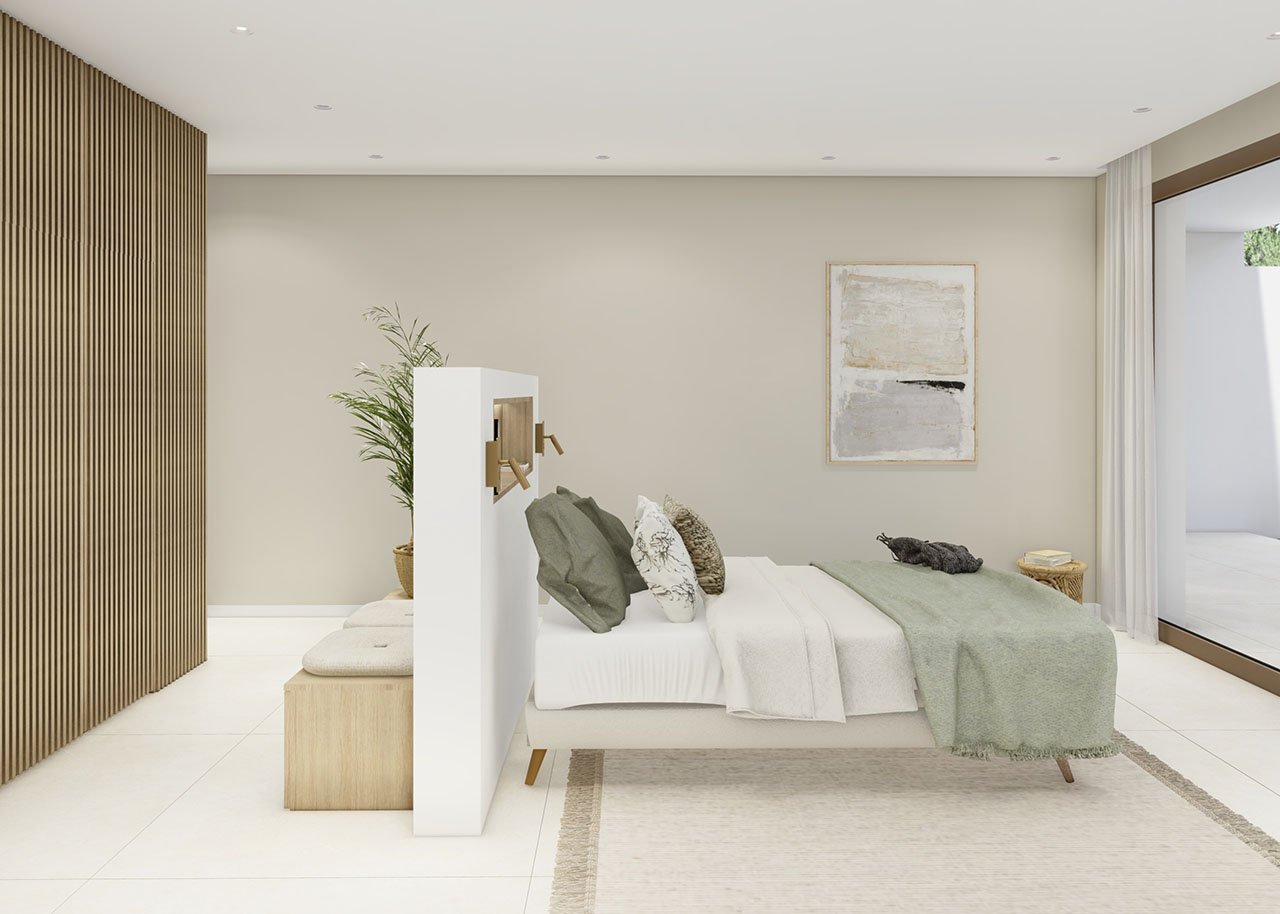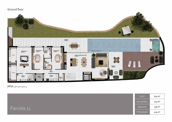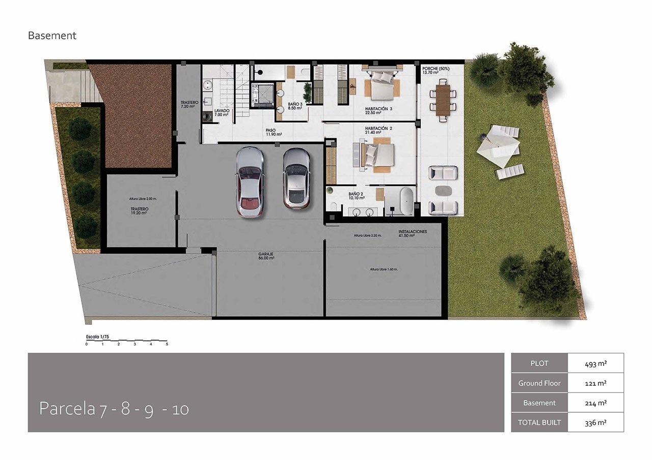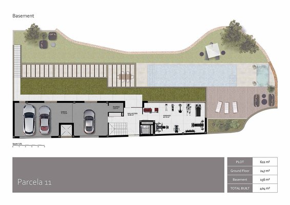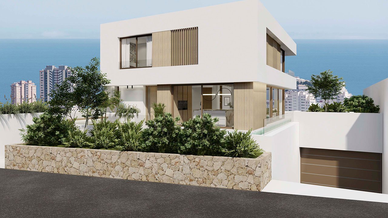Die kleine abgeschlossene Anlage besteht aus nur 11 phantastischen und großzügigen Villen mit sehr großem Souterrain, in dem sich auch die jeweilige Garage befindet, und mit Privatpool. Alle Villen bieten einen beeindruckenden Ausblick aufs Meer und die Skyline von Benidorm. Es entstehen hier drei verschiedene Modelle von Villen, die sich über 2 oder 3 Etagen erstrecken.