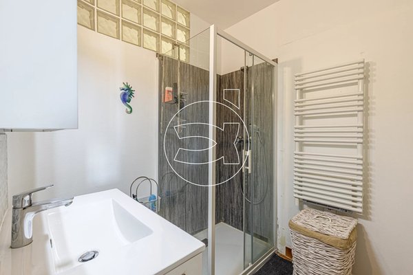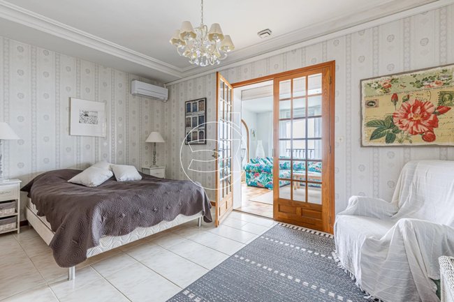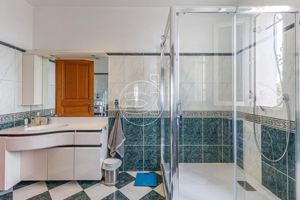 Im Erdgeschoss besteht die Villa aus: einer Eingangshalle, einem Wohnzimmer mit Bar und Kamin, einem zweiten Wohnzimmer, einer Einbauküche mit Speisekammer, drei Schlafzimmern, einem Badezimmer, einem Waschraum mit Dusche und einer Toilette. Die Treppe führt zu zwei großen Schlafzimmern, einer zweiten Küche, der Garage und führt auch zur Terrasse, dem Garten mit Pool und zum Jacuzzi.