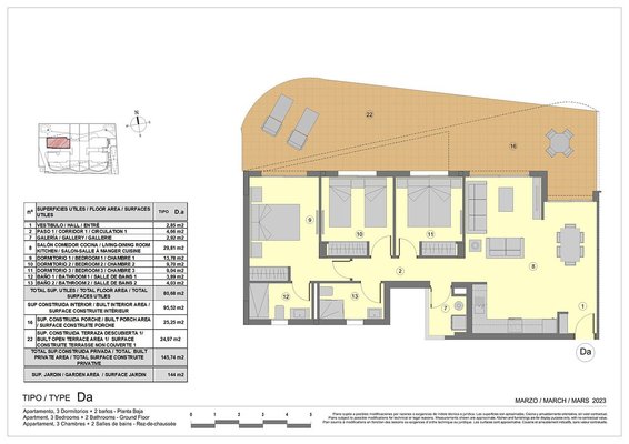 Diese strandnah gelegenen Wohnungen verfügen über eine konstruierte Fläche von ca. 115 m² - 145 m² (inklusive Terrassen, verschiedene Modelle) mit