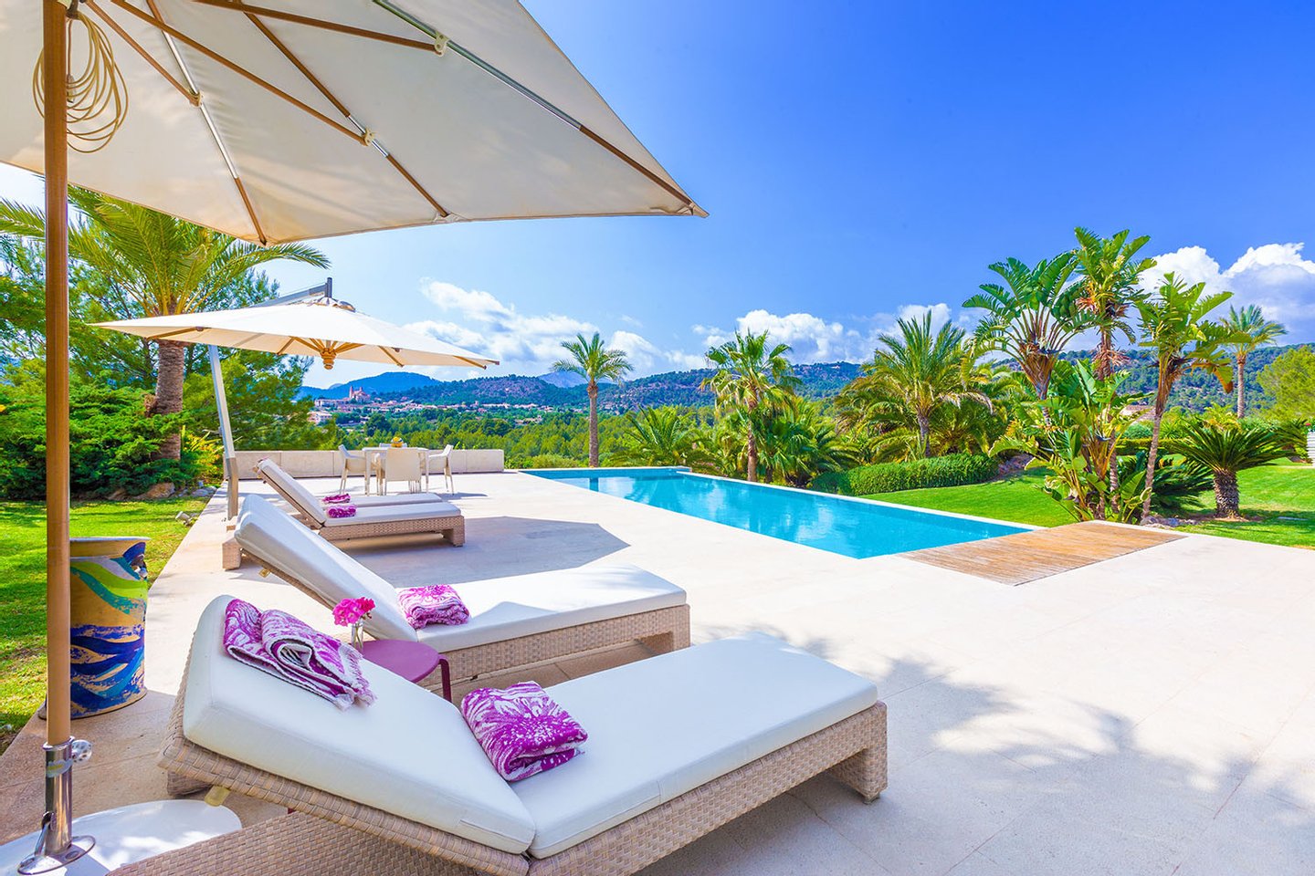 Diese Traumfinca befindet sich auf einem weitläufigen Kulturgrundstück am Rande des Dorfes Calvia, eingebettet in die traumhafte Kulisse des Tramuntana-Gebirges, und bietet absolute Privatsphäre und einen sensationellen Panoramablick auf das Dorf und