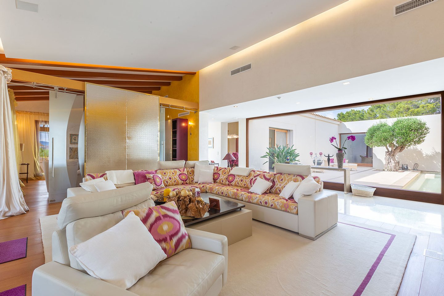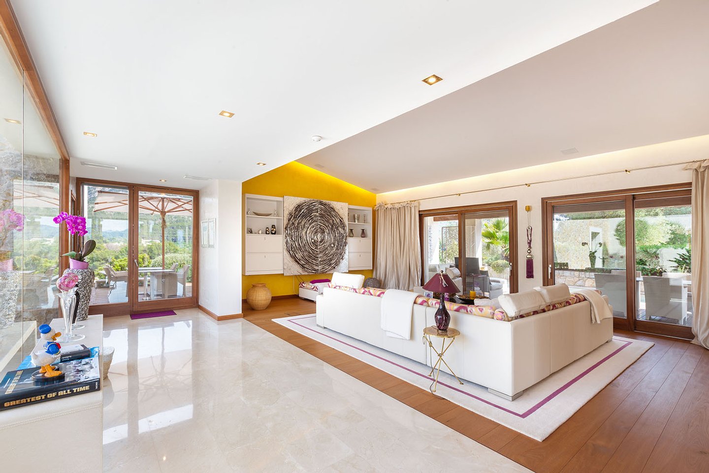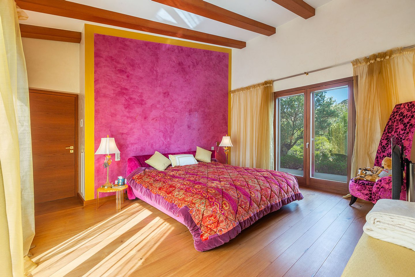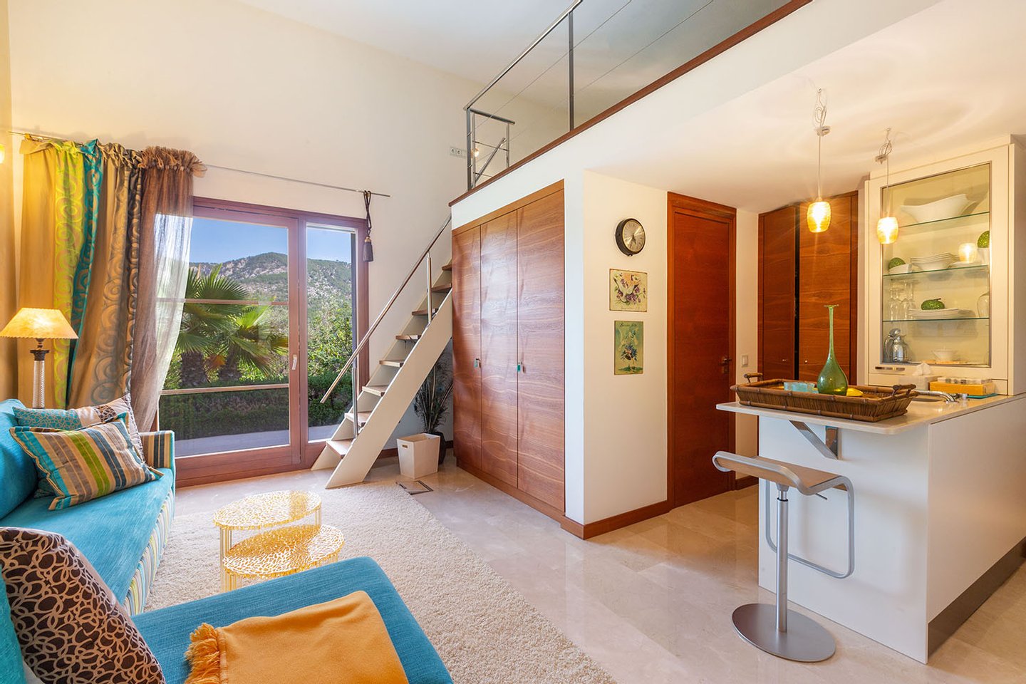 Diese Traumfinca befindet sich auf einem weitläufigen Kulturgrundstück am Rande des Dorfes Calvia, eingebettet in die traumhafte Kulisse des Tramuntana-Gebirges, und bietet absolute Privatsphäre und einen sensationellen Panoramablick auf das Dorf und die historische Kirche. In Haus-Nähe ist ein wunderbarer, sehr aufwendig gestalteter Garten mit Beleuchtung, großen Rasenflächen und einer schönen Poolterrasse angelegt. Die barrierefreie Finca beeindruckt mit einem interessanten Kontrast aus moderner Architektur und hochwertigen natürlichen Materialien. Ein luxuriöses, stylisches Innendesign sowie zeitgemäße Haus- und Sicherheitstechnik bieten höchsten Wohnkomfort. Sie ist mit der Wasserversorgung durch einen eigenen Brunnen und einer Fotovoltaik-Anlage vollkommen autark. Die Wohnfläche erstreckt sich über eine Etage und umfasst das Wohnzimmer mit Kamin und Zugang zu überdachten Terrassen und einem großen Patio mit Wasserfall, das Esszimmer, die Küche, eine Bibliothek, eine Gästetoilette und drei Schlafzimmer mit Bädern en suite, eines davon mit Ankleide und zwei mit einem kleinen Salon mit Küche. Hinzu kommt ein Mehrzweckraum, das als ein Büro oder ein weiteres Schlafzimmer genutzt werden könnte. Ein separat zugänglicher Raum mit Sauna könnte als 4. Schlafzimmer oder Fitness-Bereich gestaltet werden. Im Untergeschoss gibt es eine Garage für 4 PKW und einen Wirtschaftsraum sowie Technik- und Abstellräume.
