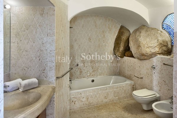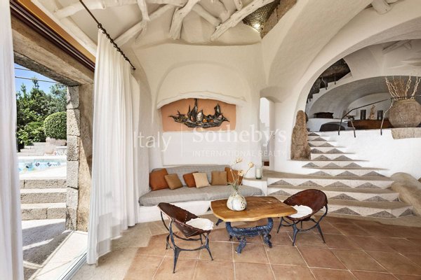Vom Wacholder bis zu den für diese Region der Gallura typischen Felsen, den gemauerten Sitzgelegenheiten bis zu den Wandleuchten ist jedes Detail das Resultat eines großartigen Projekts zur Verwirklichung eines beeindruckenden Anwesens, das durch den berühmten Architekten und zahlreiche sardische Handwerker geschaffen wurde.