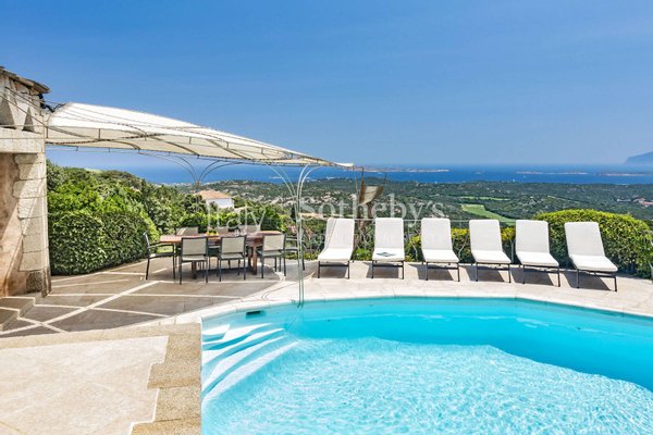 Ikonische und landschaftlich beeindruckende Villa, entworfen vom renommierten Architekten S. Couelle. Diese außergewöhnliche, freistehende Villa mit spektakulärem 180-Grad-Blick auf das Meer befindet sich auf dem Pevero Golf Hügel, einem begehrten