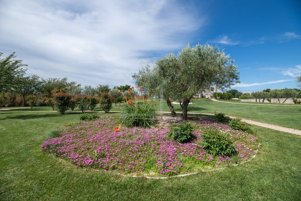 Der große mediterrane Garten wurde mit sehr viele Liebe und außergewöhnlicher Anpflanzung vom Eigentümer angelegt, sodass die Blumenpracht mit ihren Blüten vom Frühjahr bis in den November.