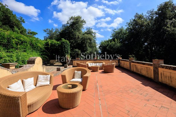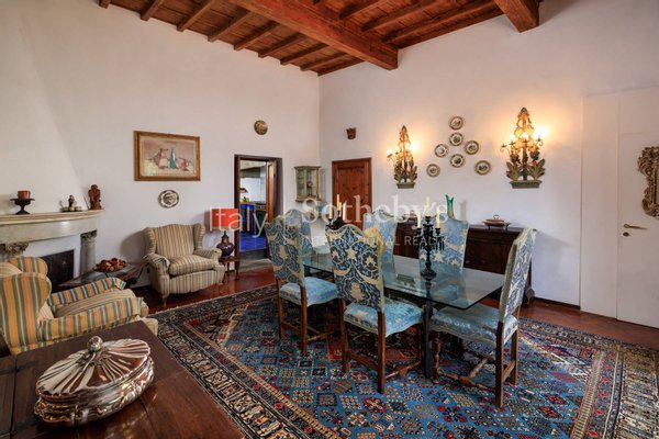 In einzigartiger Lage, nur einen Steinwurf vom Piazzale Michelangelo und der International School of Florence entfernt, befindet sich eine herrliche Wohnung mit einer Fläche von etwa 300 Quadratmetern, umgeben von einem Grundstück von etwa 1 Hektar
