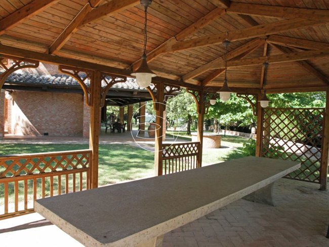 Bemerkenswert ist das hohe Niveau der Ausstattung: Im Inneren der Villa gibt es schöne Decken mit Balken und sichtbaren Fliesen. Das komplett eingezäunte Grundstück wird teilweise als Park genutzt, in dem sich auch ein Tennisplatz, ein Olivenhain mit etwa 600 Bäumen und ein Weinberg mit etwa 5000 Quadratmetern befinden.