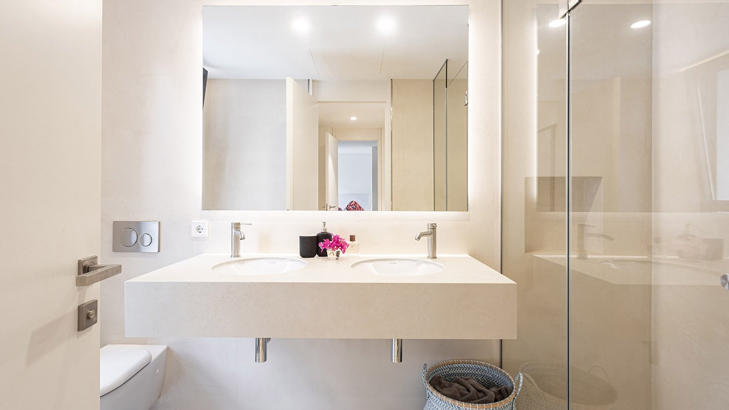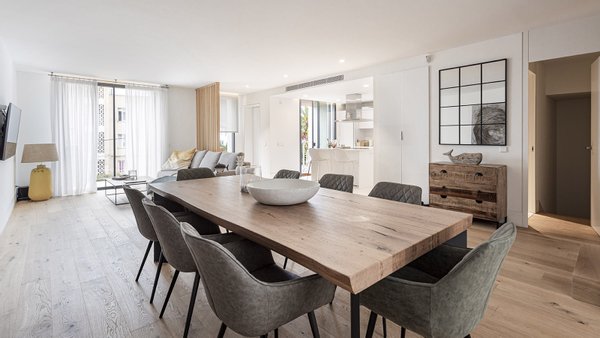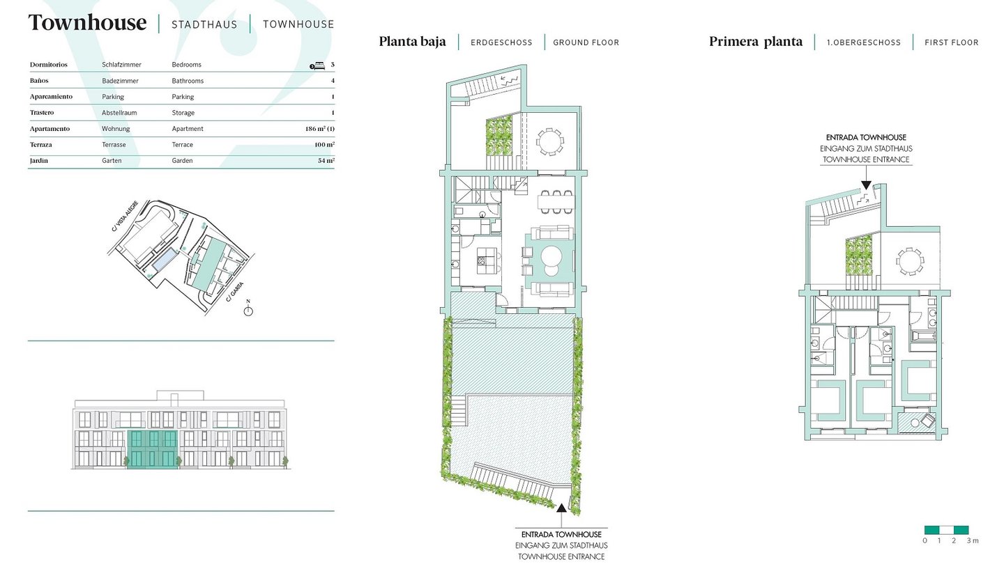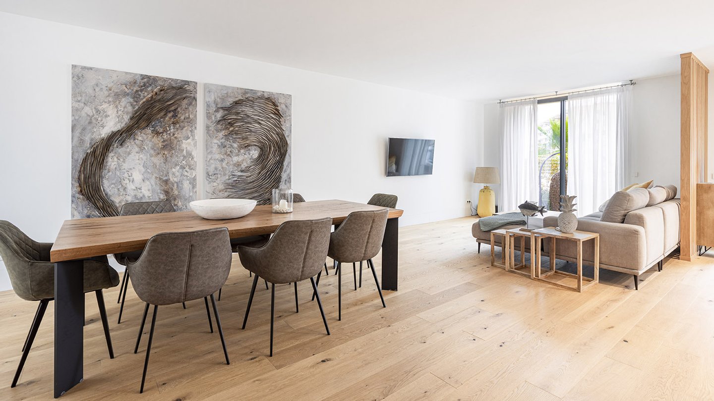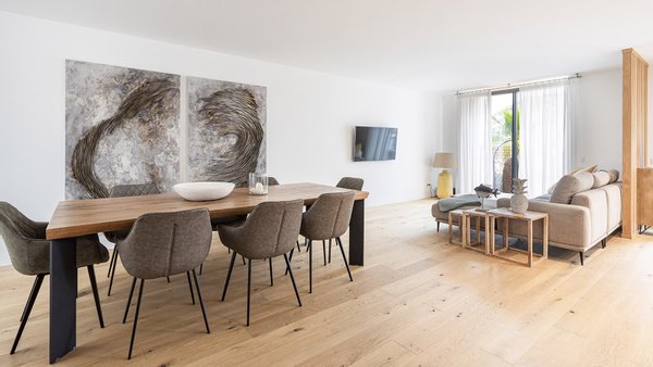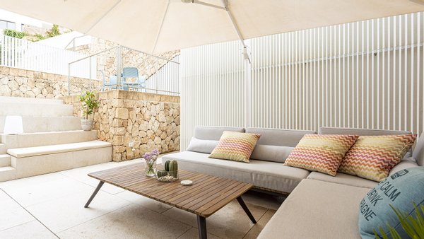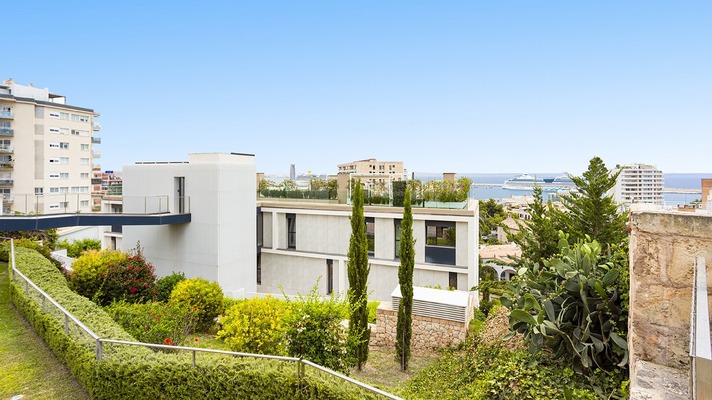 Neubau Apartment Mallorca: Dieses Neubau - Duplex Erdgeschossapartment befindet sich nur wenige Minuten vom beliebten Paseo Maritimo und dem Yachthafen von Palma de Mallorca entfernt. Das moderne Duplex-Apartment wurde im Jahr 2020 erbaut und verfügt über eine Wohnfläche von ca. 186 m2, eine offene Terrasse von ca. 50 m2, sowie einen ca. 54 m2 großen Privatgarten mit Chill-Out-Bereich. Hier können Sie sich Ihr eigenes Wohlfühlparadies inmitten der pulsierenden Stadt Palma schaffen. Die Mallorca Immobilie bietet 3 Schlafzimmer mit 3 Bädern, alle en suite, einen offenen und hellen Wohn-/Essbereich mit offener Einbauküche ausgestattet mit Siemens-Elektrogeräten, ein Gäste-WC, einen Hauswirtschaftsraum, einen Abstellraum, sowie einen Kellerraum. Der schicke Neubau überzeugt durch seine hochwertigen und geschmackvoll verwendeten Materialien. Zu den Qualitätsmerkmalen zählen: doppelt verglaste Aluminiumfenster, Naturholz-Laminatboden, Fußbodenheizung, Klimaanlage warm /kalt, ein BUS-System (computergesteuerte Haustechnik), Wärmepumpentechnik, Solarenergie und vieles mehr. Hervorzuheben ist das Holzdeck mit 2 Terrassen und Patio. Von hier aus hat man direkten Zugang zur Straße. Von der Tiefgarage gelangt man direkt ins Haus. Im mediterran angelegten Außenbereich befindet sich der große Gemeinschaftspool, sowie Terrassenbereiche. Der perfekte Ort um sich in den heißen Sommermonaten bei einem Sprung in das kühle Nass zu erfrischen. 2 Garagenstellplätze runden das Angebot von diesem Erdgeschoss Duplex - Apartment ab.Palma de Mallorca ist eine der beliebtesten und bekanntesten Großstädte in Europa. Fußläufig erreichen Sie exklusive Bars und Restaurants, sowie die populäre Playa de Palma. Bis in die Altstadt von Palma sind es nur wenige Minuten zu Fuß. Genießen Sie das mediterrane Ambiente auf der beliebtesten Insel im Mittelmeer. Der internationale Flughafen ist in ca. 15 Minuten zu erreichen und verbindet Sie ganzjährig mit allen Metropolen Europas.Diese Neubau Immobilie Mallorca wird Ihnen präsentiert von Ihrem führenden Immobilienmakler im Südwesten der Insel, Casa Nova Properties in Santa Ponsa.