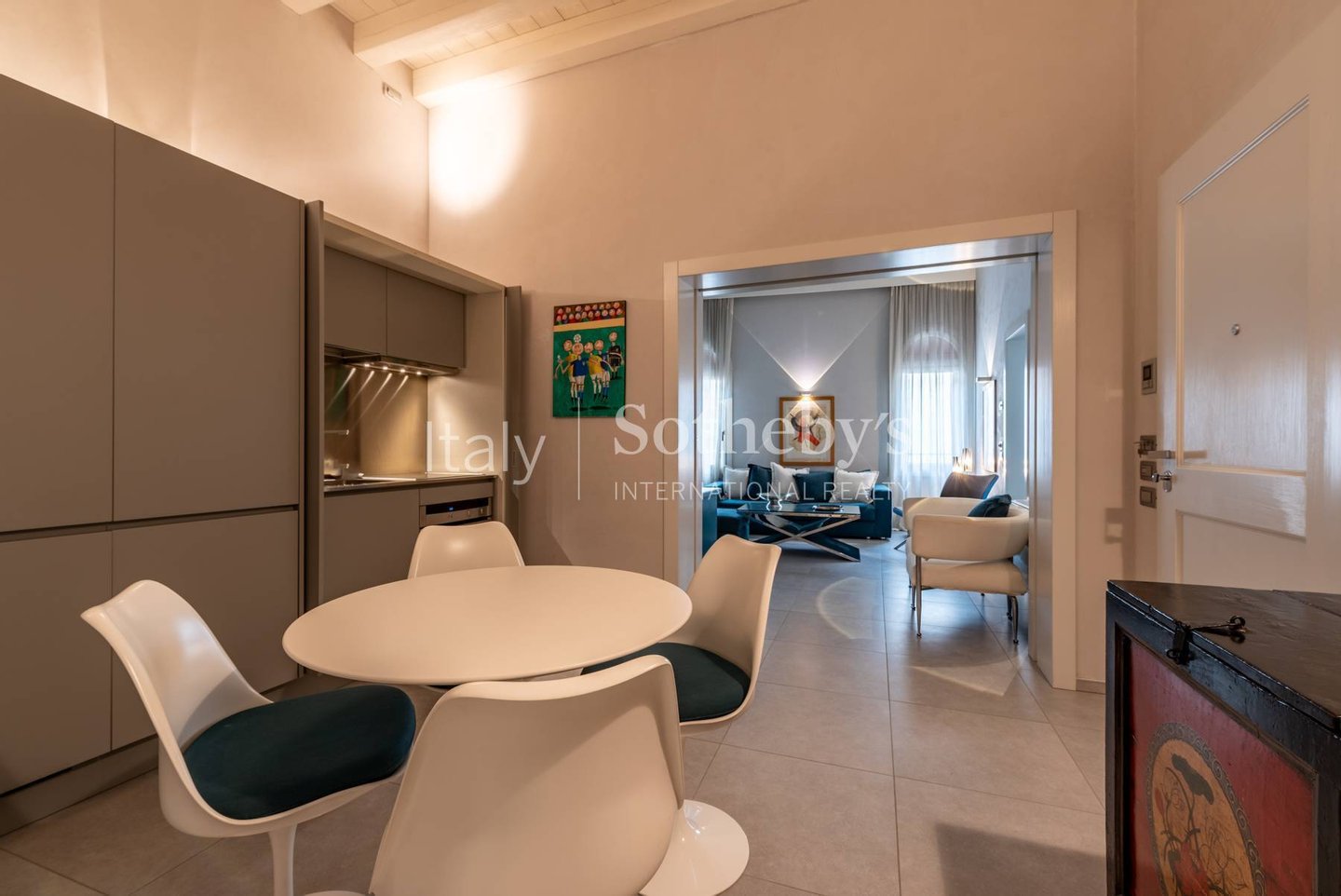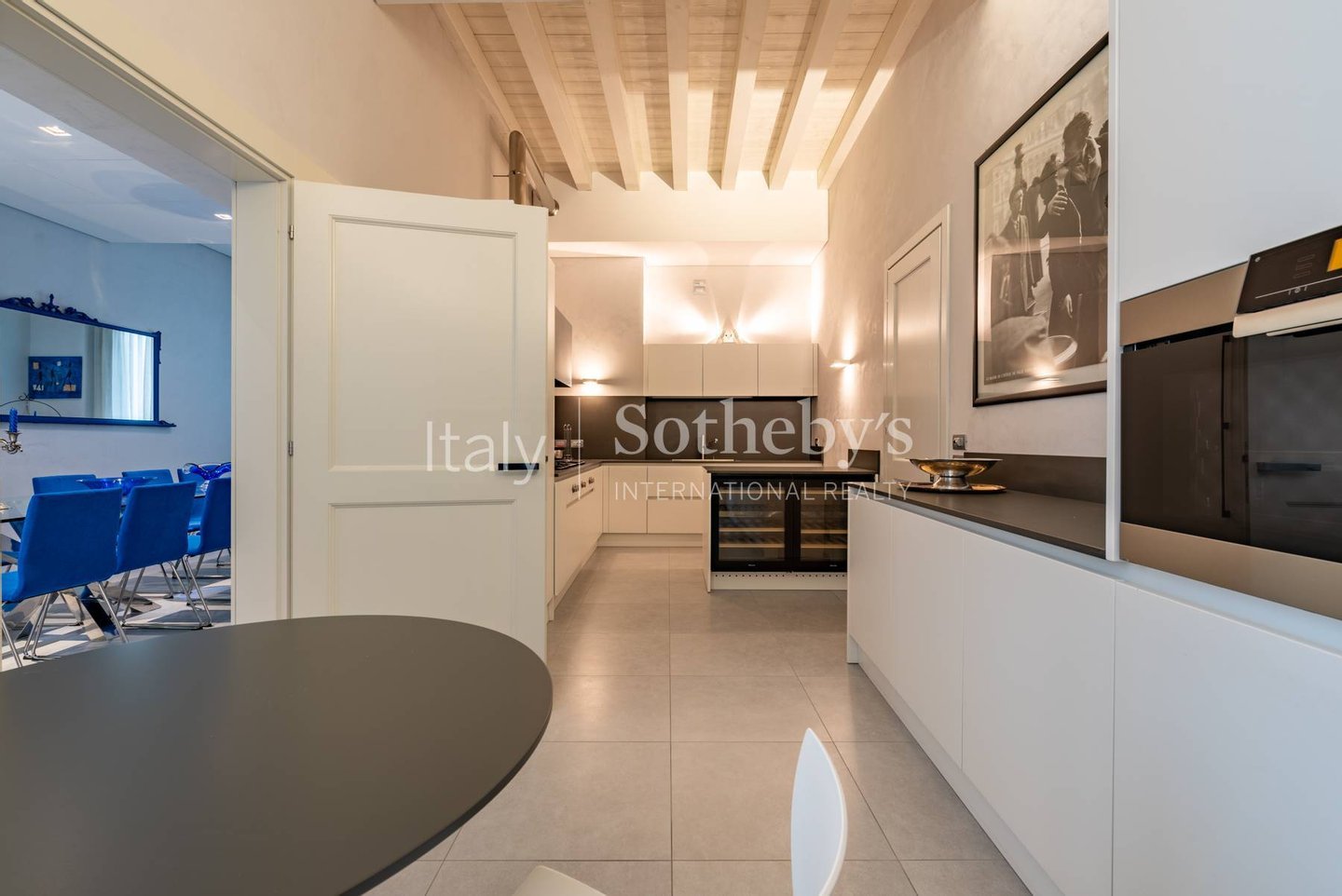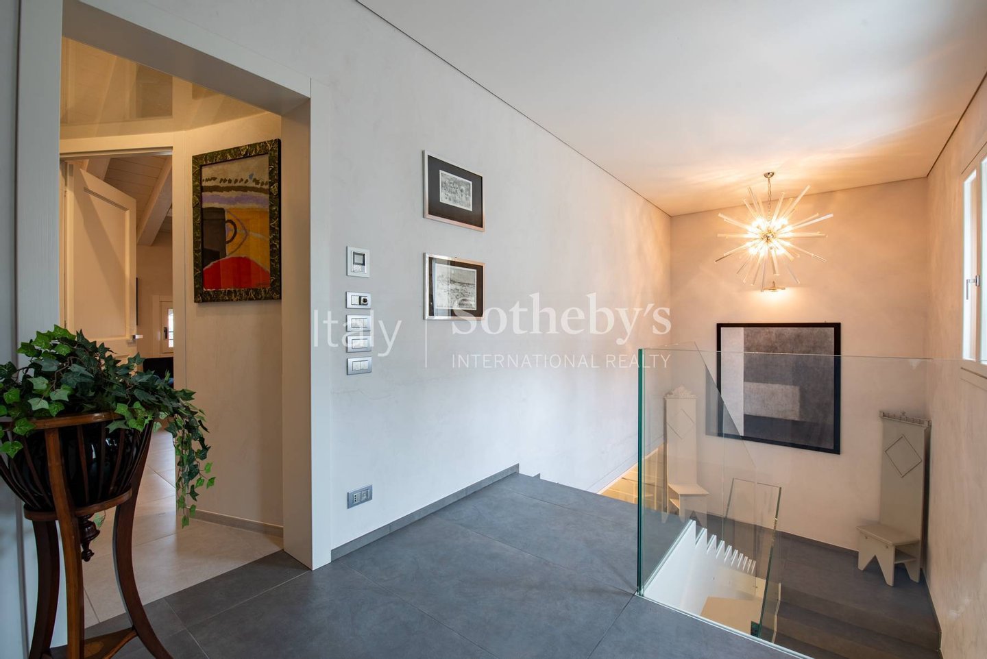 Conegliano ist eine elegante Stadt im oberen Treviso-Gebiet, reich an Geschichte, Kunst und Kultur, wo sich die bezaubernde Atmosphäre ihres lebhaften alten Dorfes mit dem natürlichen Charme der Hügel verbindet, die das historische Zentrum umgeben, in einer Landschaft, die von der Unesco als Weltkulturerbe geschützt ist der Menschheit für ihre Schönheit. Und nur wenige Schritte von der Piazza Cima, dem Herzen der Stadt, entfernt, zwischen der stillen Via XX Settembre, die von prestigeträchtigen Renaissancepalästen gesäumt ist, und dem Hauptcorso Vittorio Emanuele, der in der Nähe des monumentalen Neptunbrunnens steht, befindet sich dieses elegante Gebäude aus dem 15. Jahrhundert, jetzt komplett renoviert und eine der exklusivsten Residenzen. Das Anwesen, das sich über einen großen Teil des Gebäudes erstreckt und Ausblicke und Eingänge auf beiden Straßen bietet, umfasst das völlig unabhängige Haupthaus mit einem exklusiven Eingang, das über ein privates Treppenhaus und einen Aufzug bedient wird, und eine angrenzende, autonome, aber kommunizierende Unterkunft für Gäste oder Servicepersonal. Das große Hauptapartment hat den wichtigsten Räumen im Erdgeschoss wie dem geräumigen Wohnzimmer, hell und mit Liebe zum Detail, mit seinem Badezimmer, dem zentralen Flur mit Garderobe neben dem Aufzug und der Eingangstreppe, etwas abgeschiedener und einem raffinierten Esszimmer Zimmer mit separater Küche, komplett ausgestattet mit allen Geräten, einschließlich gekühltem Weinkeller und Frühstückstisch. Die offene Treppe im Wohnzimmer führt zum Dachgeschoss mit weißen Balken und zur privaten, bewohnbaren Außenterrasse, von der aus man weiter oben auf die private Dachterrasse gelangt, die diese Immobilie nicht nur einzigartig und noch exklusiver macht, sondern auch bietet einen eindrucksvollen 360-Grad-Panoramablick auf die Stadt und die Umgebung. Der Schlafbereich bietet ein großzügiges Hauptschlafzimmer mit angrenzendem Badezimmer, ein Doppelzimmer mit eigenem Bad und ein Einzelzimmer. Das Haus wird durch einen Zwischenraum mit separatem Eingang vervollständigt, der mit Pflanzenarrangements ausgestattet ist und sich ideal als Fitnessraum oder zur Ausstattung mit einem kompletten Spa eignet. Im Erdgeschoss befindet sich der unabhängige Eingangsbereich, der vom Innenhof über die Via XX Settembre zugänglich ist, während sich auf der darunter liegenden Etage ein großer Abstellraum und die Waschküche mit einem dazwischen liegenden Raum für die direkte Verbindung zur privaten Garage mit Platz für 4 Autos befinden. Die ergänzende Unterkunft ist intern durch das Erdgeschoss verbunden, behält aber durch einen separaten Eingang völlige Autonomie und bietet ein einladendes Wohnzimmer, ein Esszimmer mit Küche, ein Badezimmer und eine Waschküche sowie ein Doppelzimmer mit angrenzendem begehbarem Kleiderschrank, der bereits mit allem Notwendigen ausgestattet ist. Das gesamte Anwesen ist bis ins kleinste Detail gepflegt, mit Oberflächen und Materialien von höchster Qualität, ausgestattet mit allem Komfort und hervorragenden, hochmodernen Systemen, auch mit besonderem Augenmerk auf die Sicherheit. Das nahe gelegene Autobahnnetz verbindet Treviso, Venedig und die Dolomiten.