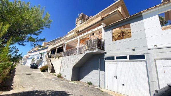 Luxusvilla in der begehrten Gegend von Campoamor. Diese Doppelhaushälfte liegt in der allerersten Strandlinie von Dehesa de Campoamor, umgeben von einer wirklich beeindruckenden Aussicht. Das Haus verfügt über 4 Ebenen mit einem Wohn-Esszimmer, vier Schlafzimmern, vier Badezimmern, 3 Terrassen und einem Solarium. Die untere Etage verfügt über einen Innenzugang zur Garage und einen Abstellraum sowie 2 Parkplätze in einer Privatstraße. Das Erdgeschoss bietet ein Wohnzimmer mit Kamin, ein Badezimmer aus Travertinmarmor, eine voll ausgestattete Küche mit Speisekammer und Zugang zu einer hinteren Terrasse, wo sich ein Maschinenraum, eine Waschmaschine, ein Trockner und ein Wasserenthärter befinden. Im ersten Stock finden wir ein Hauptschlafzimmer mit eigenem Bad aus weißem Marmor, einem Ankleidezimmer und Zugang zu einer privaten Terrasse mit Meerblick; 2 weitere Schlafzimmer und ein komplettes Badezimmer. Im Obergeschoss finden wir einen Wohnbereich, der Zugang zu einem Doppelzimmer mit eigenem Bad und einem Solarium bietet, das einen unglaublichen Blick auf das Mittelmeer und die umliegenden Gebiete bietet. Das gesamte Anwesen verfügt über Aluminium/Climalit-Fenster, einen Stadtgasanschluss, der die Versorgung mit Sanitärwasser und die Fußbodenheizung gewährleistet.