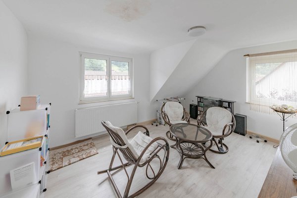 Im Erdgeschoss befinden sich eine Küche, ein Wohnzimmer, zwei Schlafräume sowie ein Badezimmer. Das Obergeschoss verfügt über 4 weitere Zimmer und eine Toilette. Hier könnte man mit etwas Aufwand ein Zimmer in eine Küche verwandeln.